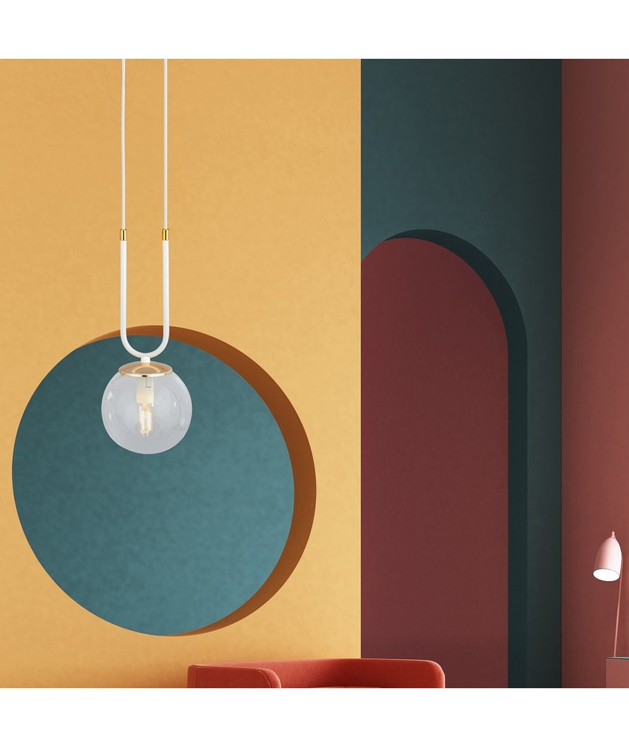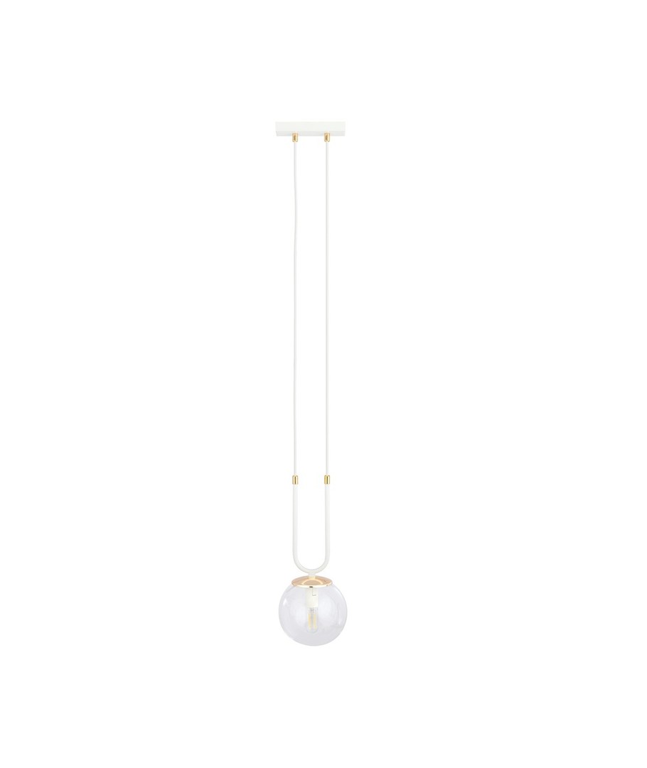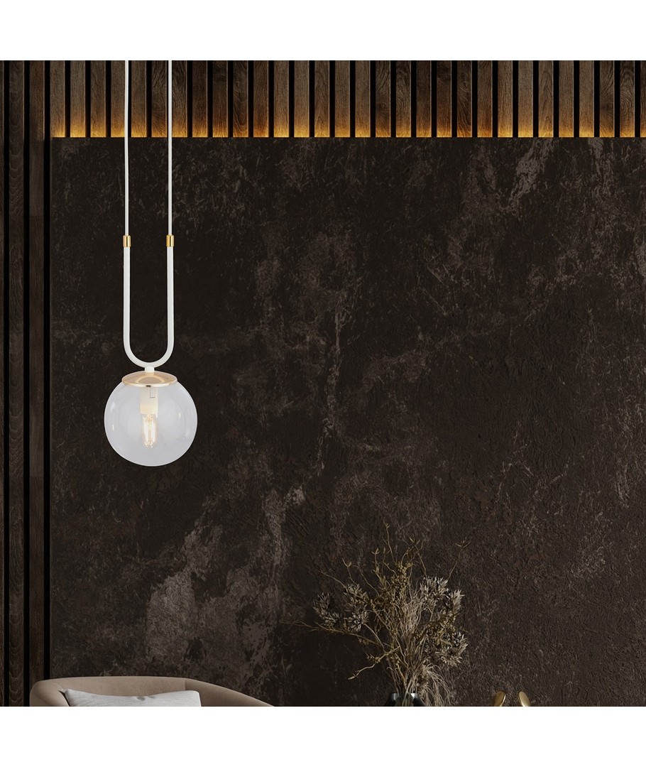 Glam 1 hvit/transparent pendellampe er en estetisk perle, designet for å bringe eleganse inn i ethvert hjem. Den er en del av GLAM-serien, som er kjent for sine trendy glamour egenskaper. Denne lampen tilfører et ekstraordinært skinn av luksus til rommet, presentert med en chic og sofistikert stil. Glasskuppelen tilfører en letthet og finesse, mens de gyldne detaljene bringer liv og lys til designet. Perfekt for de som verdsetter overdådighet og skjønnhet i sin innredning.