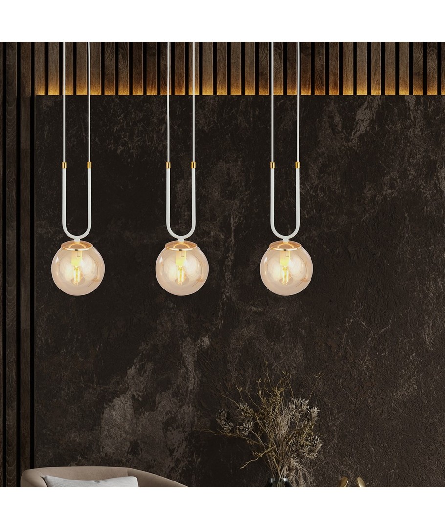 Glam 3 Hvit/Rav pendellampe kombinerer luksus og funksjonalitet perfekt.