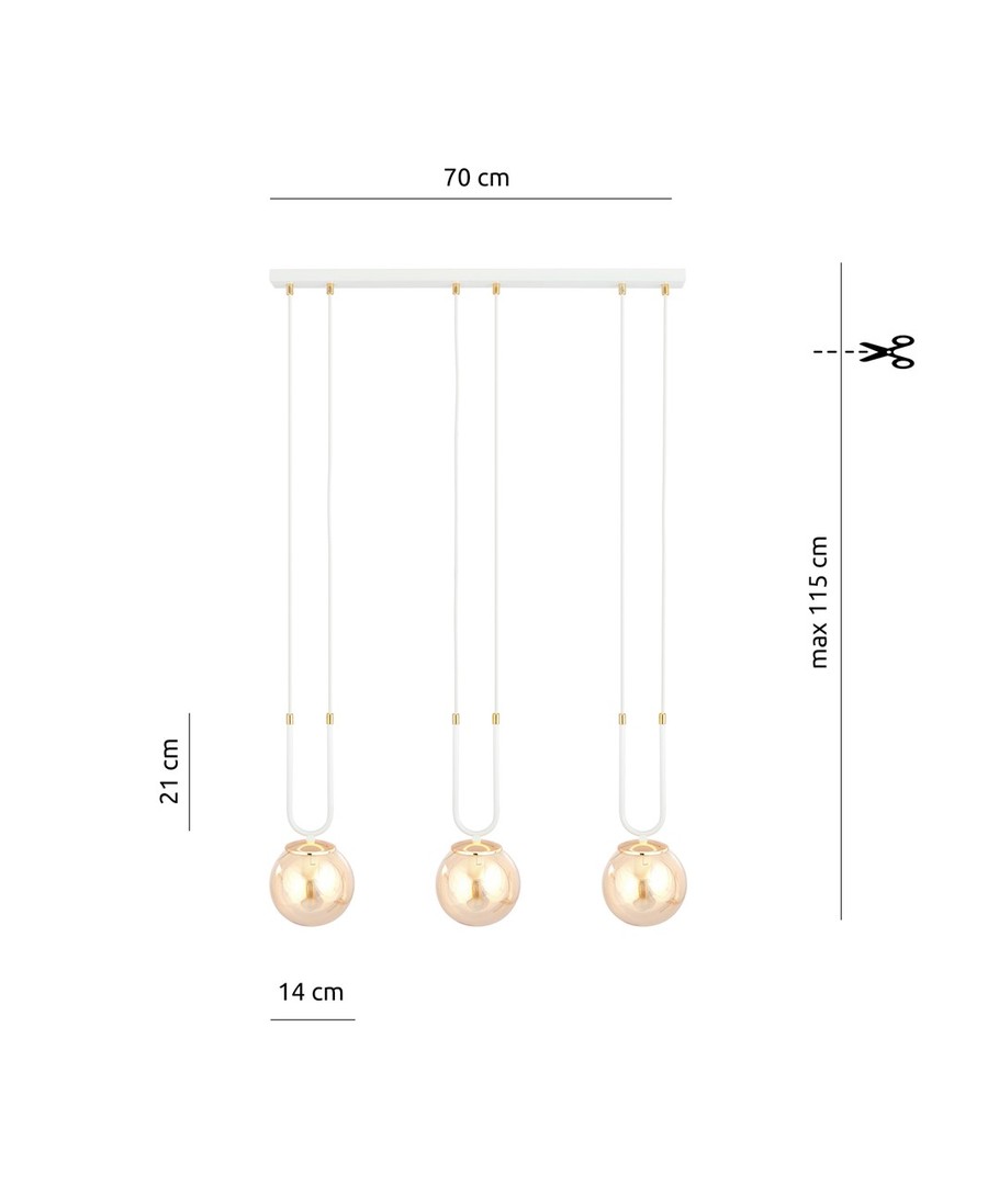 Glam 3 Hvit/Rav pendellampe er en del av den eksklusive GLAM-serien, som bringer moderne glamour inn i ditt hjem. Med sitt elegante og tidløse design tilfører denne lampen en ekstraordinær atmosfære til ethvert rom. De delikate glasskjermene kombinert med de gyldne detaljene skaper en subtil skjønnhet som fanger oppmerksomheten. Designet for dem som elsker luksus og estetikk, vil denne lampen uten tvil bli et sentralt element i ditt interiør.