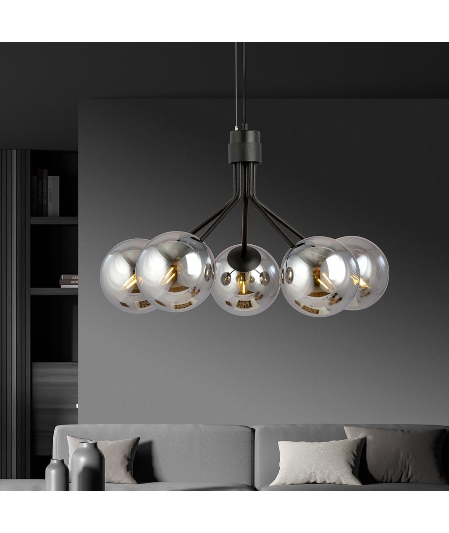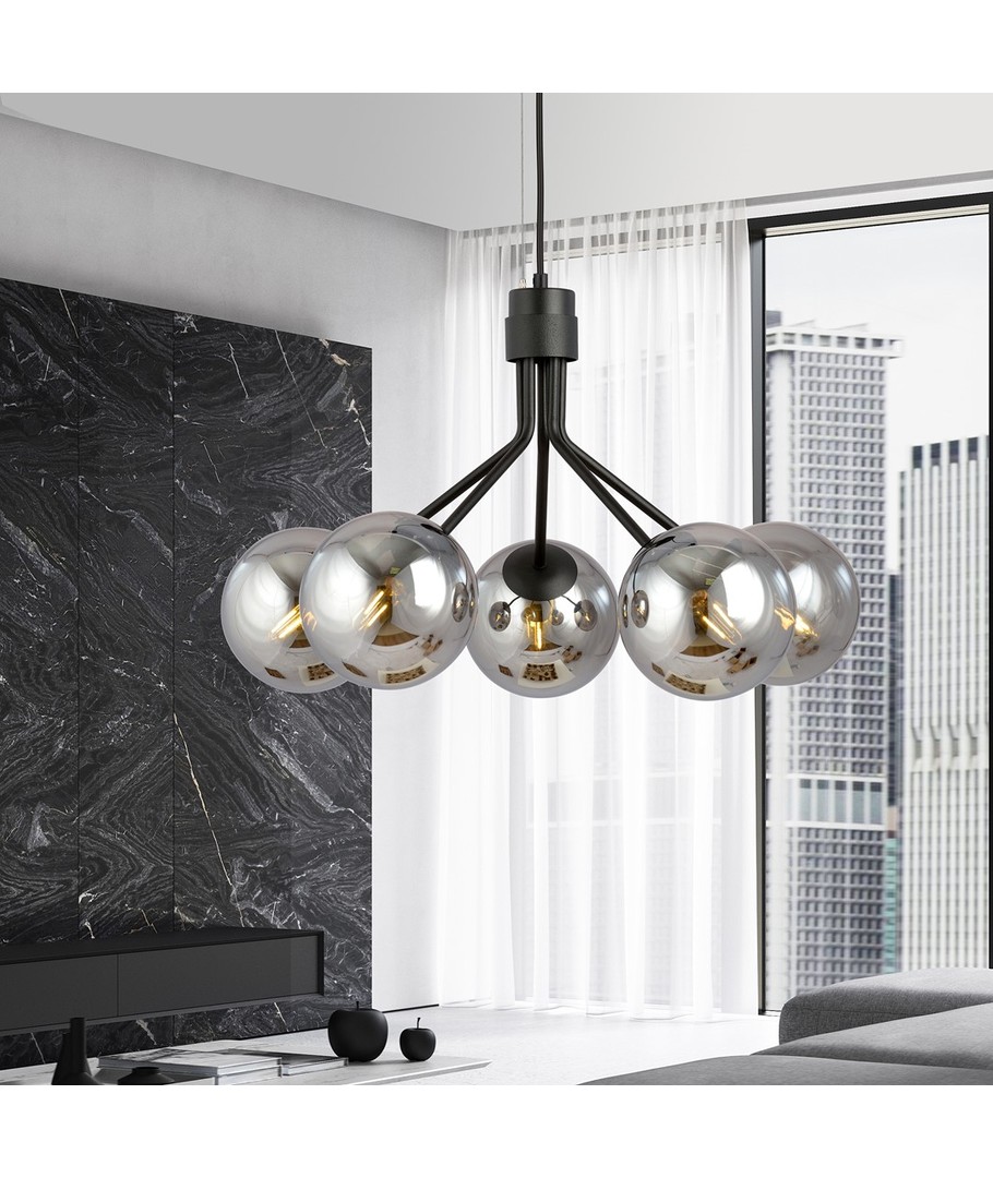 Nova 5 Sort/Grafitt pendellampe er det perfekte valget for både moderne og tradisjonelle interiører. Denne stilige lampen er ideell for å henge over et spisebord eller en kjøkkenøy og skaper en unik stemning i ethvert rom. De elegante glasskjermene tilfører en følelse av letthet og eleganse, mens det minimalistiske designet effektivt lyser opp større områder. Nova pendellampen passer perfekt til de fleste interiørstiler og er en fremragende tillegg til ditt hjem.