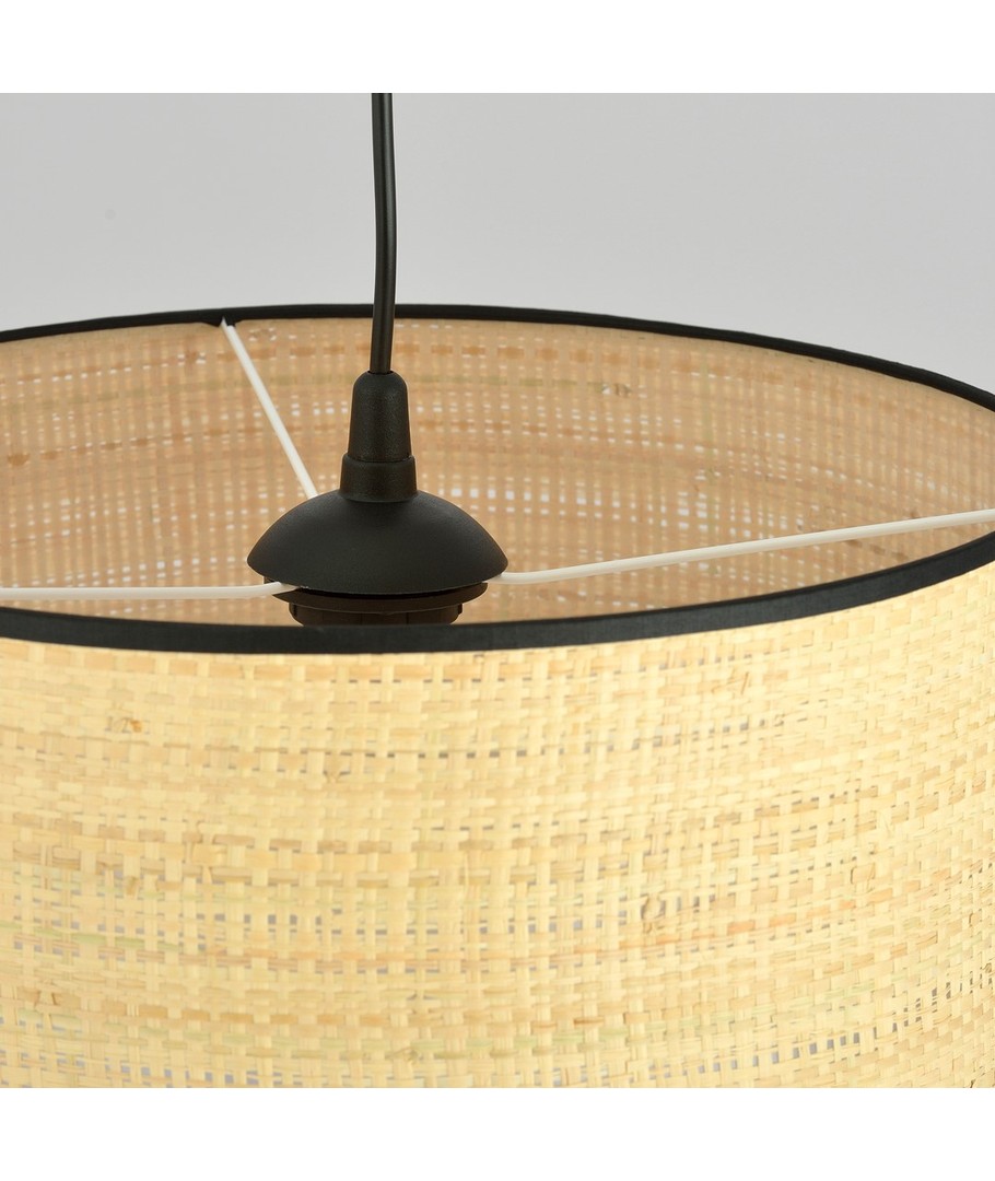 Rattanmaterialet gir ikke bare et naturlig utseende, men bidrar også til en lun lysfordeling, noe som forsterker rommets estetiske kvalitet. Denne pendellampen, med sitt enkle design og funksjonelle egenskaper, passer perfekt over spisebordet, i stuen eller i inngangspartiet der det er behov for både stil og funksjonalitet.