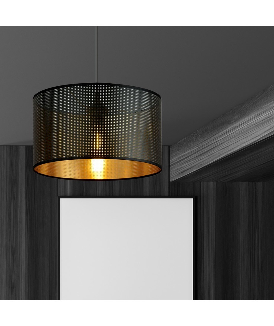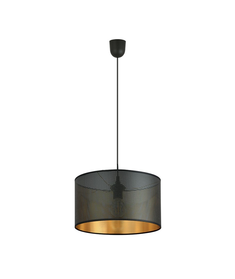 Gi rommet ditt et stilig preg med denne elegante pendellampen. Designet er både moderne og tidløst, noe som gjør den til et perfekt valg for ethvert interiør. Med en sort og gull finish vil denne lampen garantert fange oppmerksomheten og bli et blikkfang i rommet ditt.