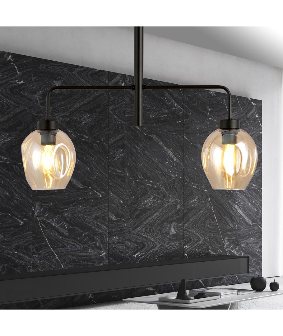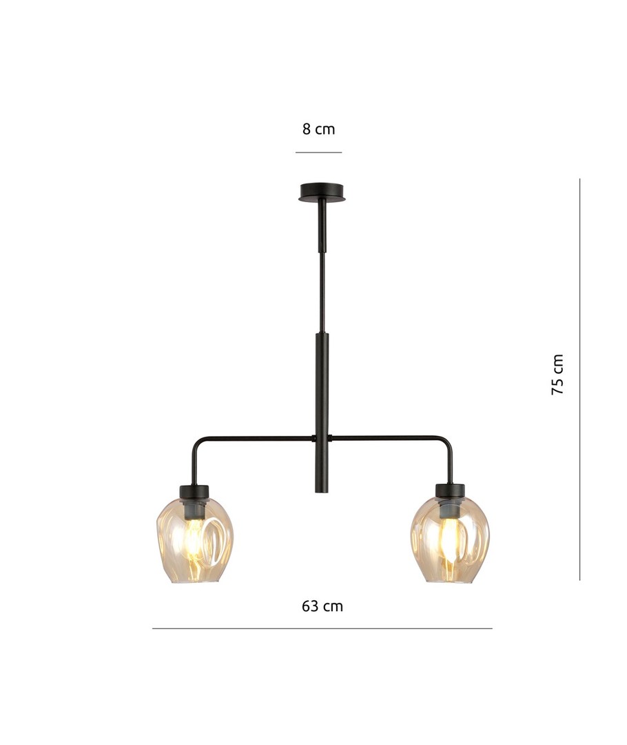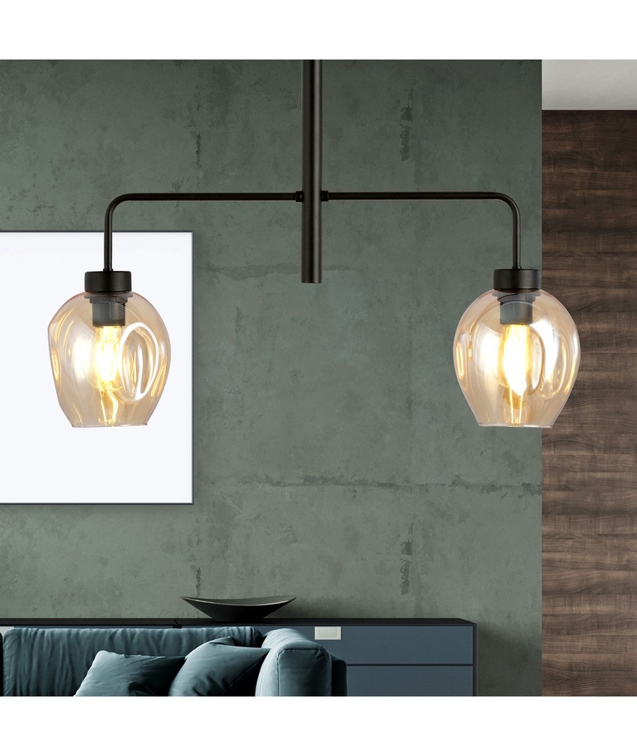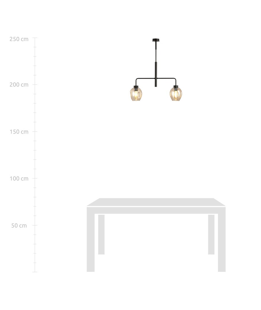 Denne pendellampen har en diameter på Ø14 cm og er designet for å gi en god lysfordeling i rommet. Lampen er laget i en flott sort/amber kombinasjon som tilfører en varm og innbydende atmosfære til ethvert rom.