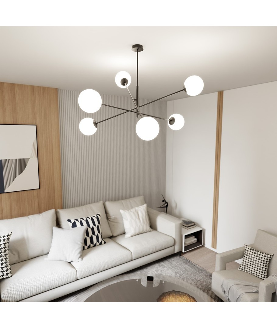 Med sitt moderne uttrykk og fleksible bruk, passer denne pendellampen perfekt inn i en rekke interiørstiler. Velg Linear 6 Sort/Opal pendellampe for å skape en innbydende atmosfære i ditt hjem.