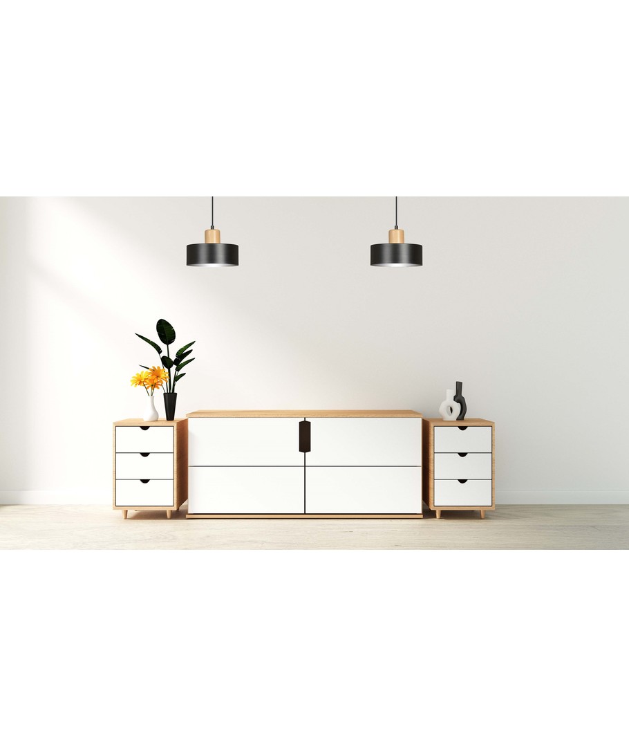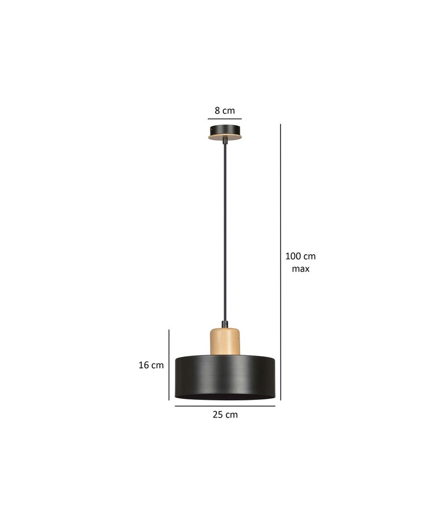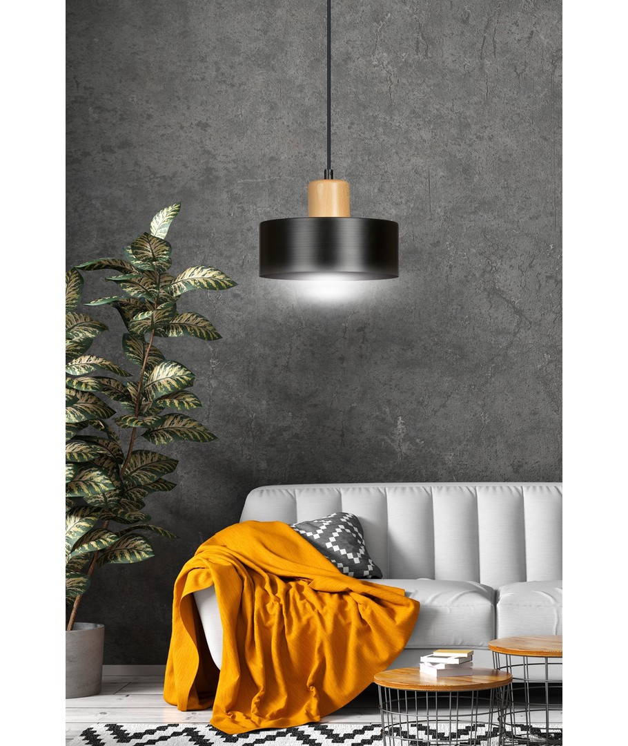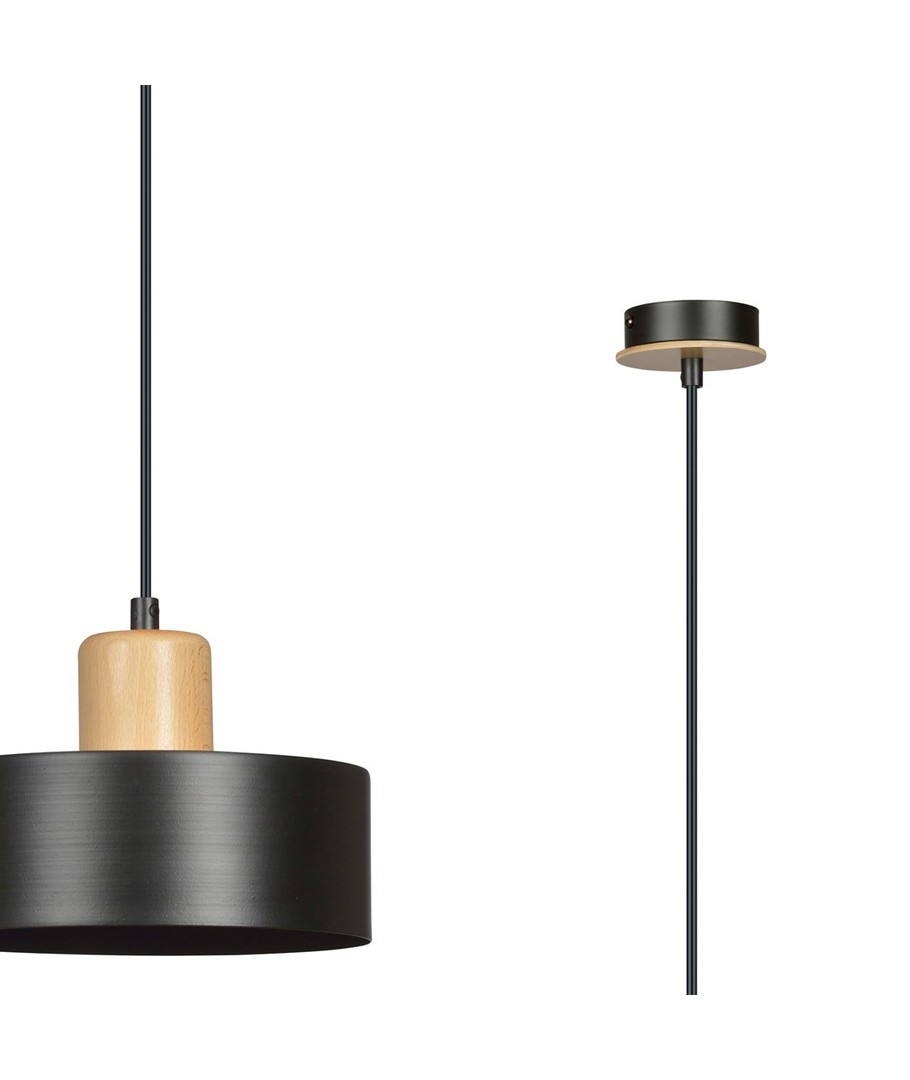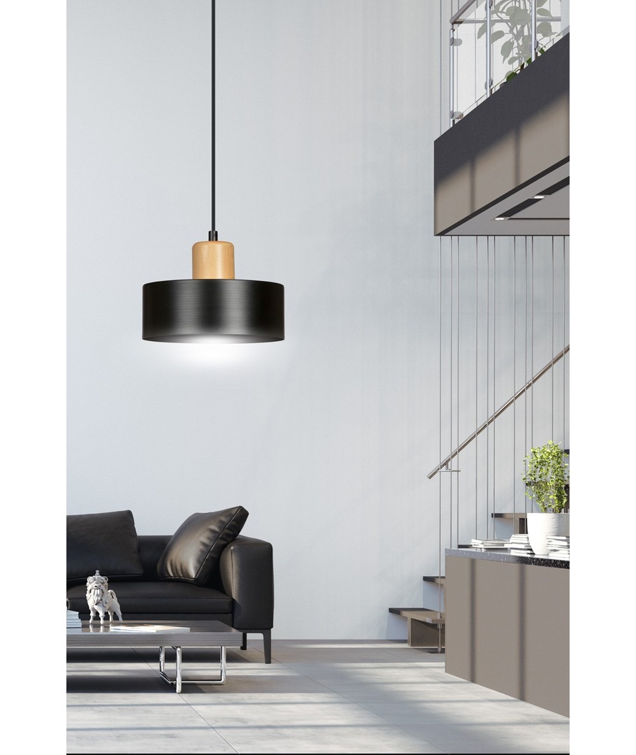 Torin 1 Sort pendellampe er den ideelle kombinasjonen av minimalistisk design og funksjonalitet. Med sin elegante, enkle form passer denne lampen perfekt inn i enhver interiørstil som søker det populære skandinaviske uttrykket. Metalskjermen er åpen og effektivt designet for å lyse opp selv store rom, mens de tiltalende treaksentene tilfører et element av stil og varme. Torin lampen er ikke bare en belysningsenhet, men en uttalelse i ditt hjem, skapt for å fange oppmerksomheten med sin subtilitet og eleganse.