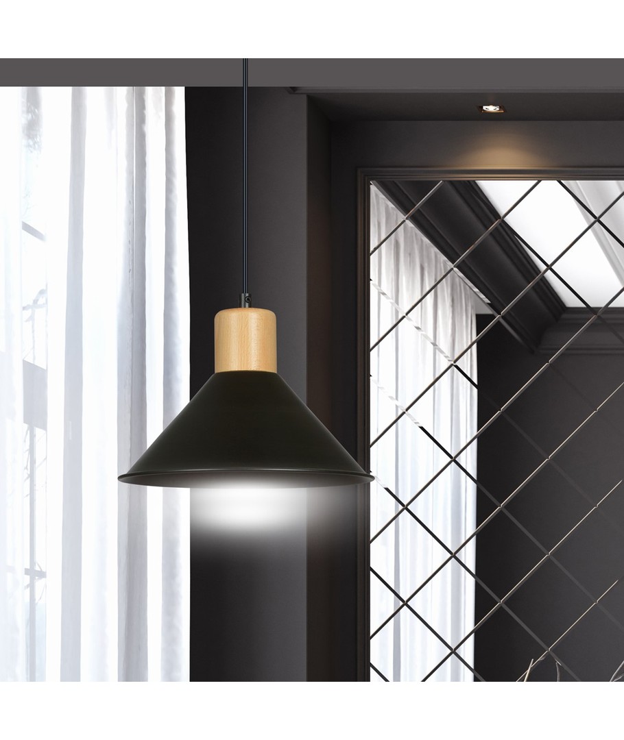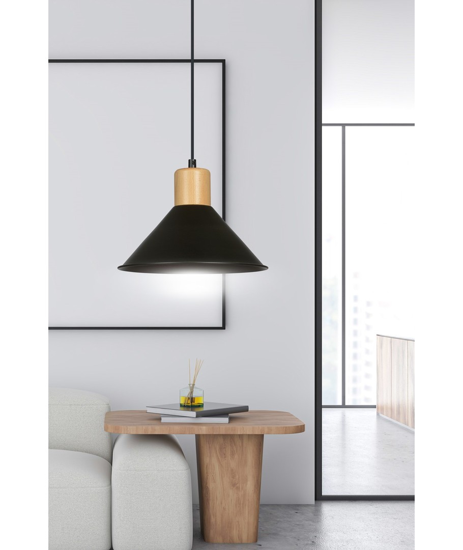 Med sin åpne metallskjerm kan lampen effektivt belyse store rom, mens tredetaljene tilfører en varm og innbydende atmosfære. Rowen lampen er ideell for både hjemmet og kontoret, hvor funksjonalitet og estetikk går hånd i hånd.