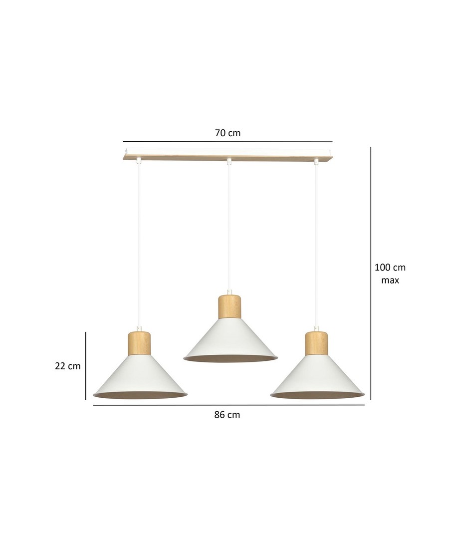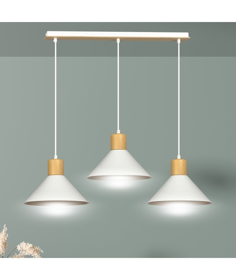 Rowen 3 hvit pendellampe i et minimalistisk design kombinerer skandinavisk stil med moderne funksjonalitet. Med sine åpne metallskjermer sikrer denne lampen effektiv belysning selv i større rom. De elegante tredetaljene tilfører et visuelt tiltalende element som passer perfekt inn i enhver interiørstil. Rowen-lampene er skapt for å være blikkfang, samtidig som de beholder en stilren enkelhet. Denne lampen er ideell for dem som verdsetter både design og funksjonalitet. Merk at lyskilde ikke medfølger, noe som gir mulighet for valg av personlig lyseffekt.