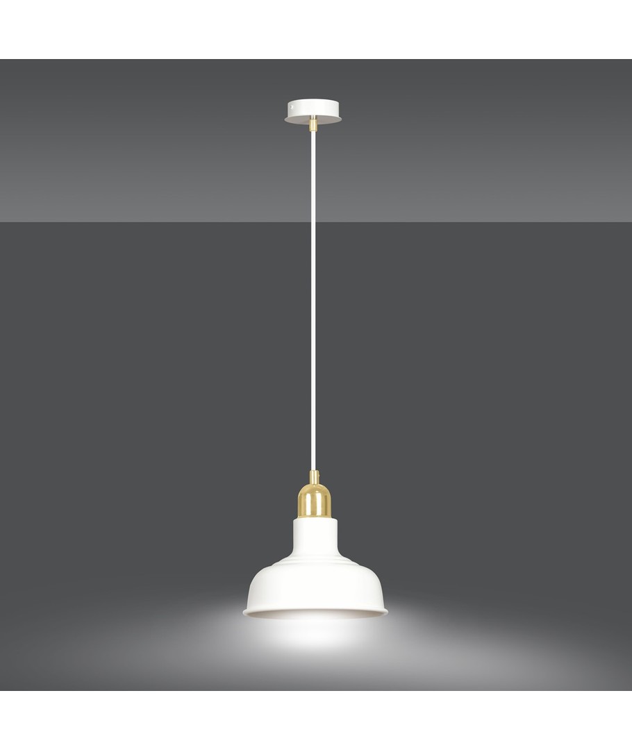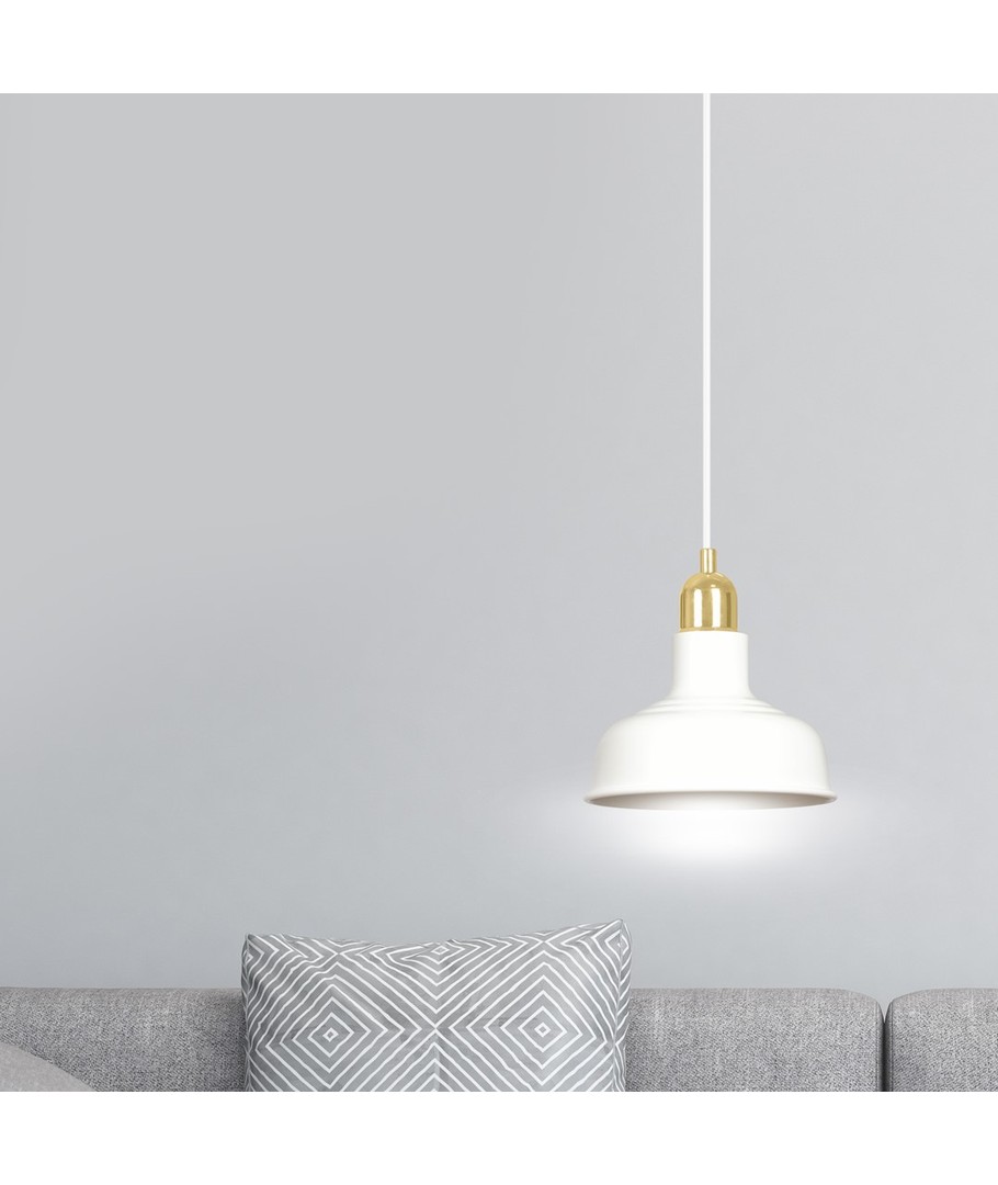 Ibor 1 Hvit pendellampe er en del av en moderne serie av taklamper med et enkelt og stilfullt design. Den passer perfekt inn i nesten enhver innredning med sitt loft-inspirerte utseende. Den åpne metalskjermen sikrer at lampen effektivt kan belyse selv store rom, noe som gjør den ideell til både hjemmet og arbeidsplassen.