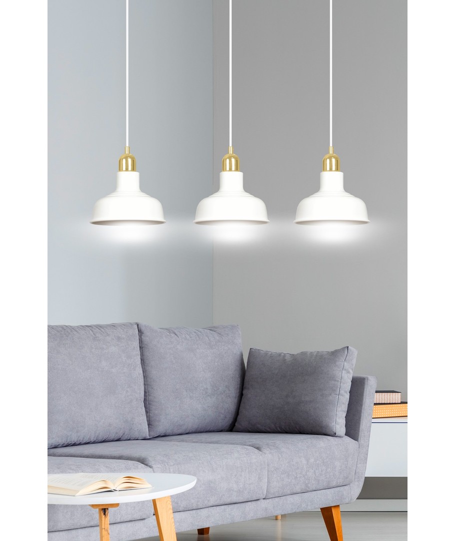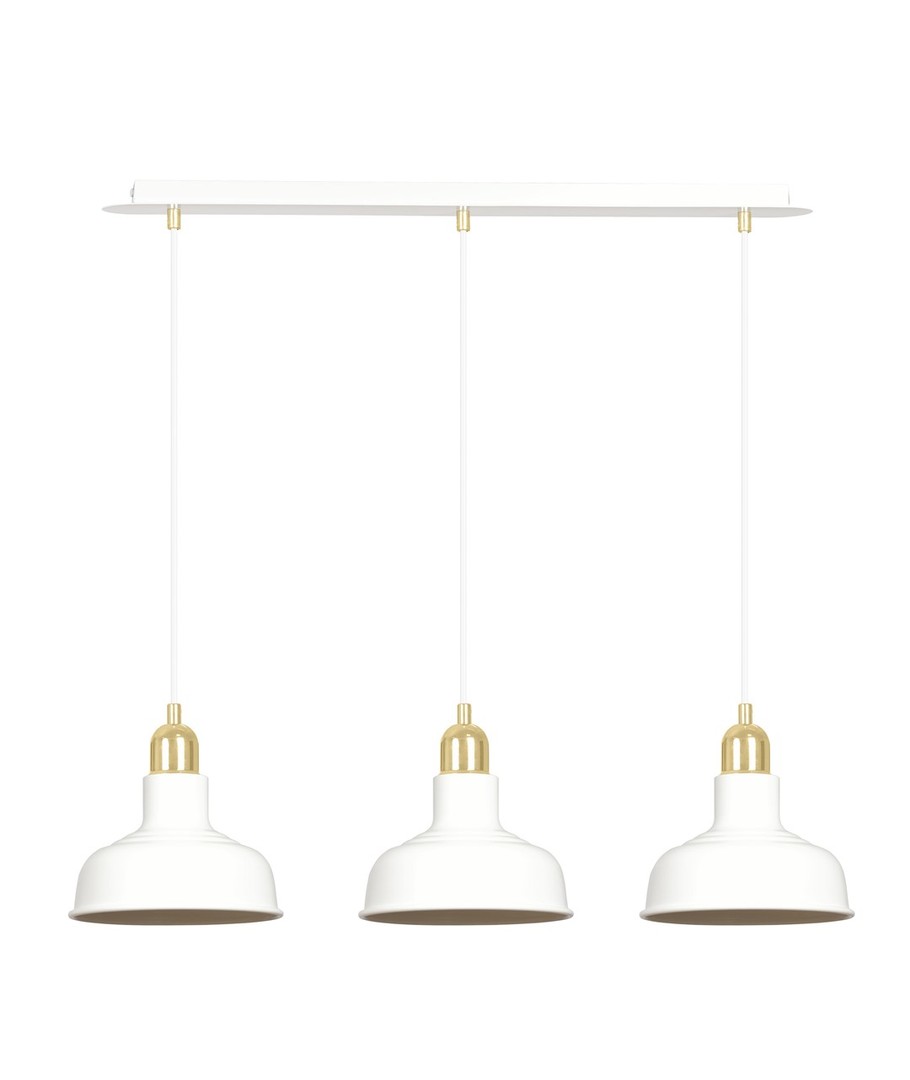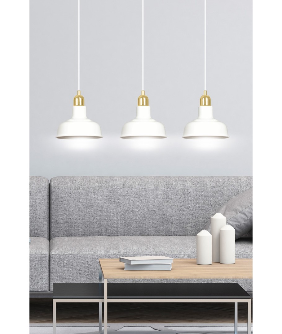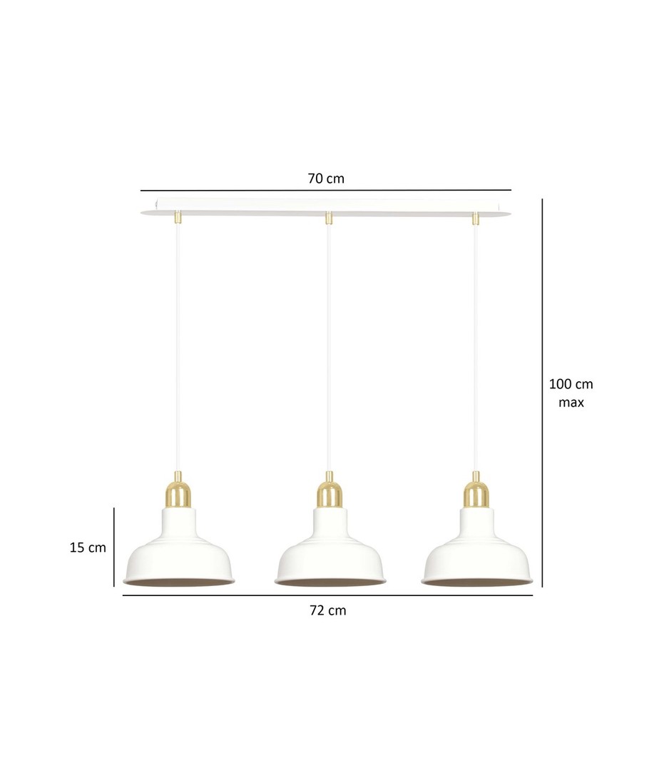 Opplev moderne belysning med Ibor 3 Hvit pendellampe, som kombinerer stil og funksjonalitet. Denne lampen er designet for å passe inn i ethvert interiør med sitt enkle og stilige utseende. Inspirert av den trendy loftstilen, tilfører lampen et moderne preg til din innredning. De åpne metallkåpene sørger for at lampen effektivt lyser opp store områder, noe som gjør den ideell for både private hjem og kommersielle rom.