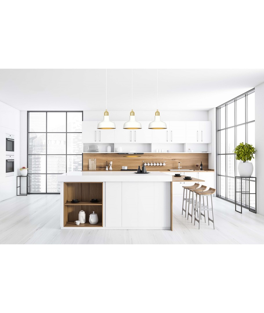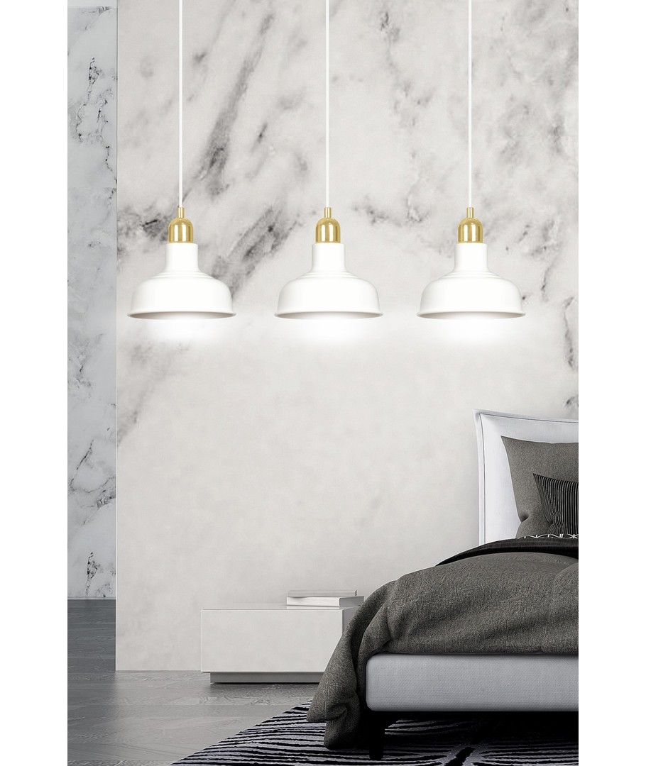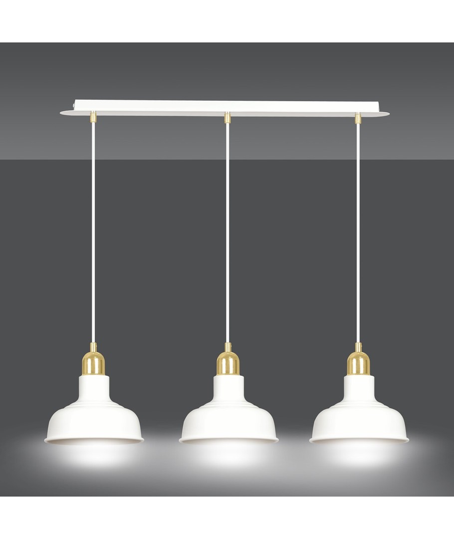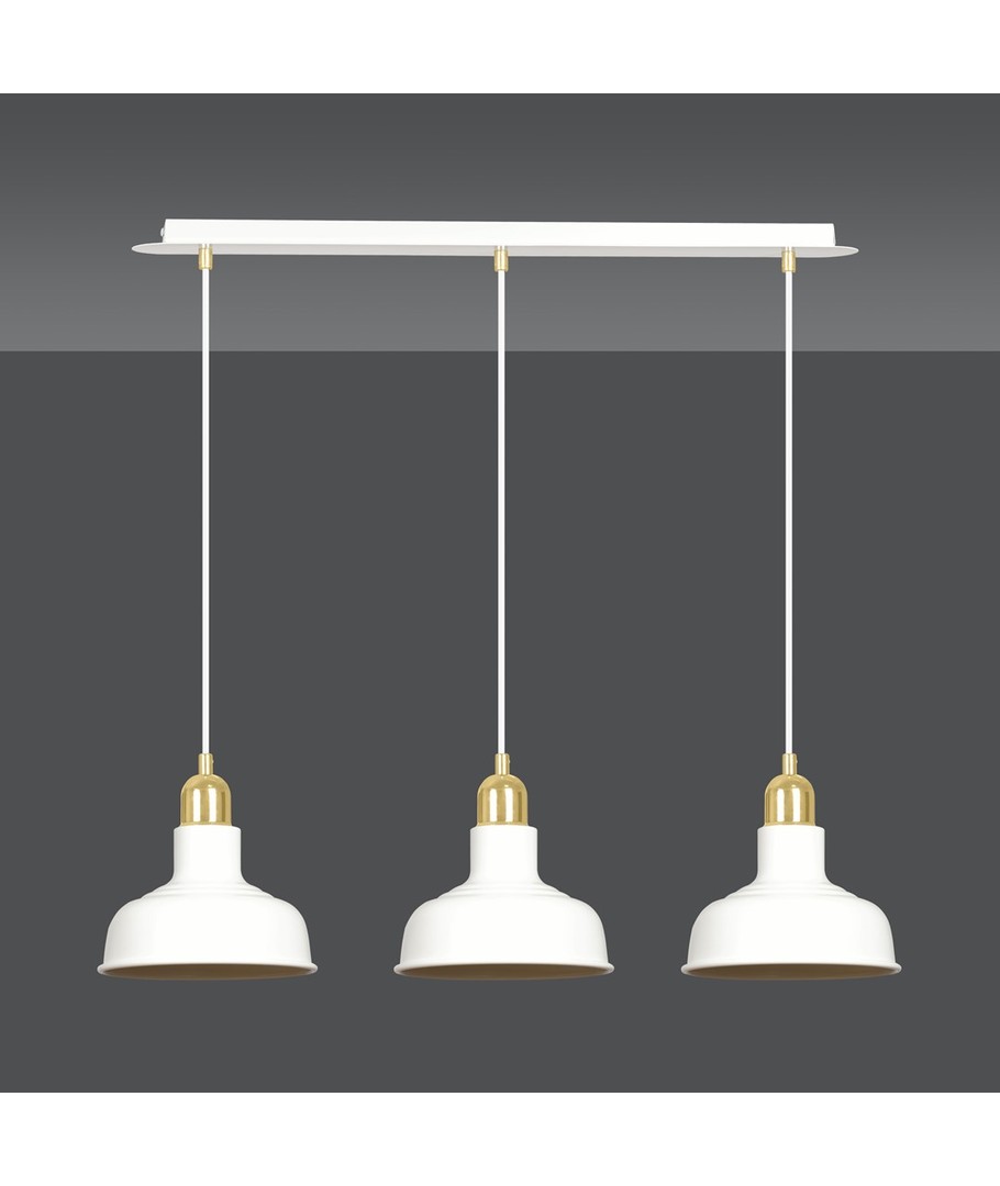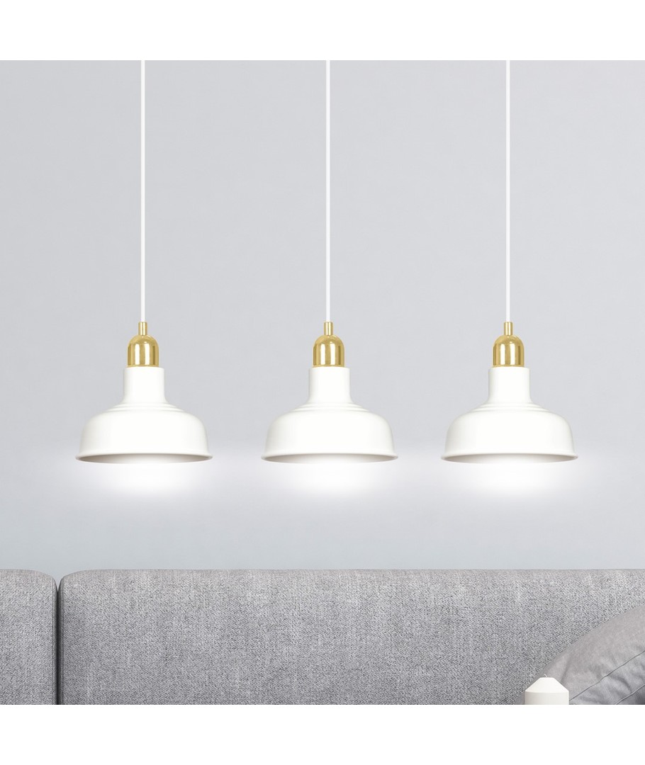 Opplev moderne belysning med Ibor 3 Hvit pendellampe, som kombinerer stil og funksjonalitet. Denne lampen er designet for å passe inn i ethvert interiør med sitt enkle og stilige utseende. Inspirert av den trendy loftstilen, tilfører lampen et moderne preg til din innredning. De åpne metallkåpene sørger for at lampen effektivt lyser opp store områder, noe som gjør den ideell for både private hjem og kommersielle rom.