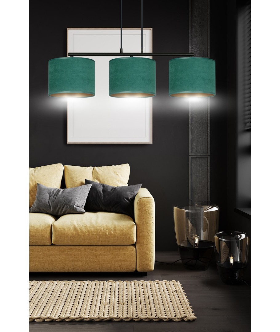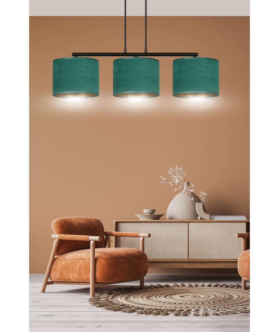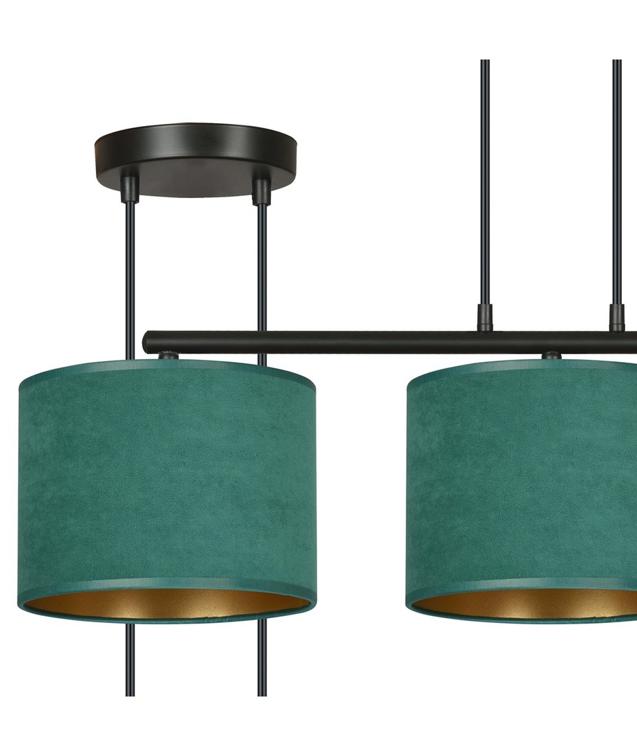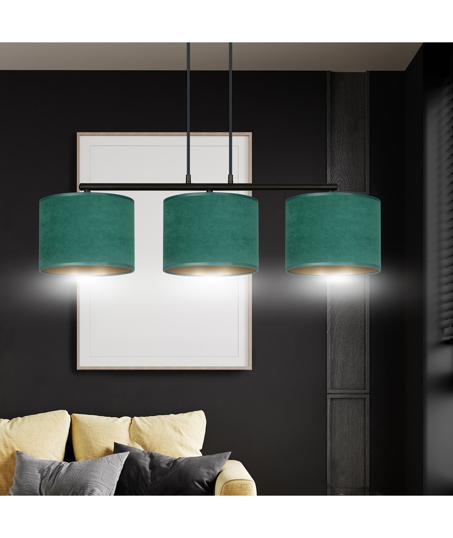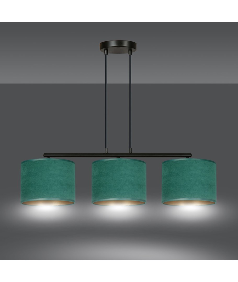 Hilde 3 Sort/Grønn pendellampe kombinerer moderne og klassisk design, noe som gjør den perfekt for ethvert interiør. Denne pendellampen har en justerbar ledningslengde som gir mulighet for tilpasning etter dine unike behov. Lampeskjermene er laget av et holdbart materiale med en fløyelsaktig tekstur og en gyllen innside som tilfører en luksuriøs følelse. Den enkle konstruksjonen og elegante fargekombinasjonen gjør denne lampen til et allsidig valg som passer perfekt over spisebordet eller i stuen.
