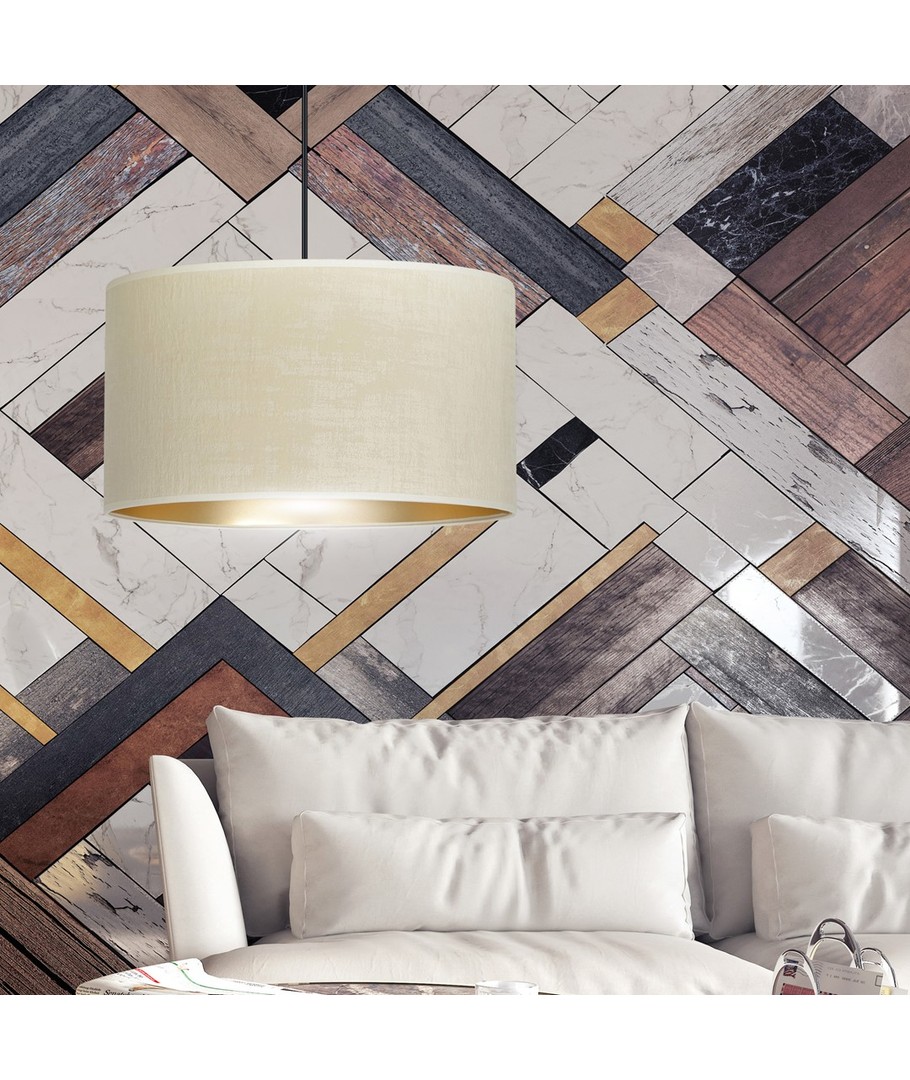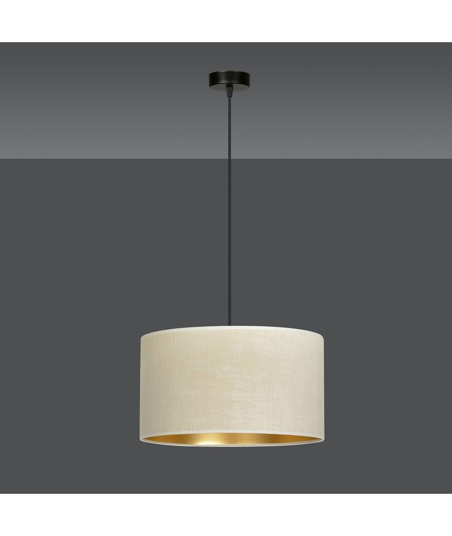 Opplev eleganse og funksjonalitet med Hilde 1 Sort/Hvit pendellampen, som komplementerer både moderne og klassiske interiører. Med en justerbar lengde kan du tilpasse lampens plassering etter dine behov. Lampeskjermen er laget av holdbart materiale med en fløyelsaktig tekstur og en gylden innside, hvilket skaper en varm og behagelig belysning. Det enkle designet og den stilige fargekombinasjonen gjør lampen til et allsidig valg som passer perfekt inn i ethvert rom.