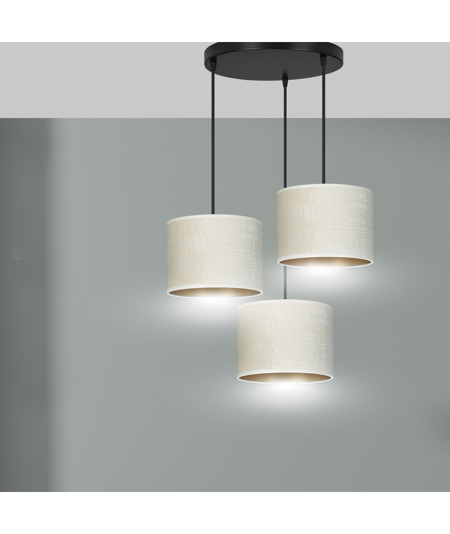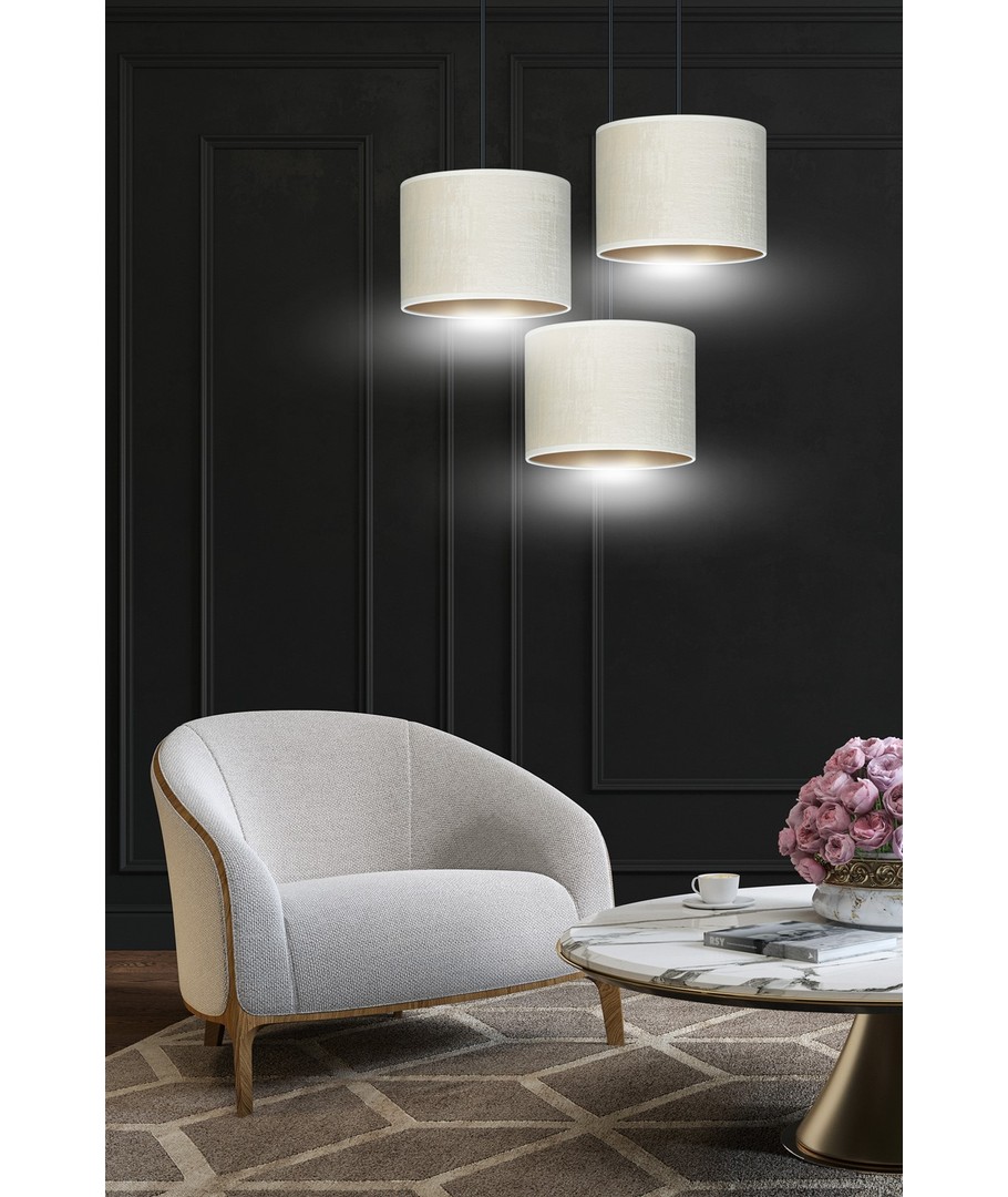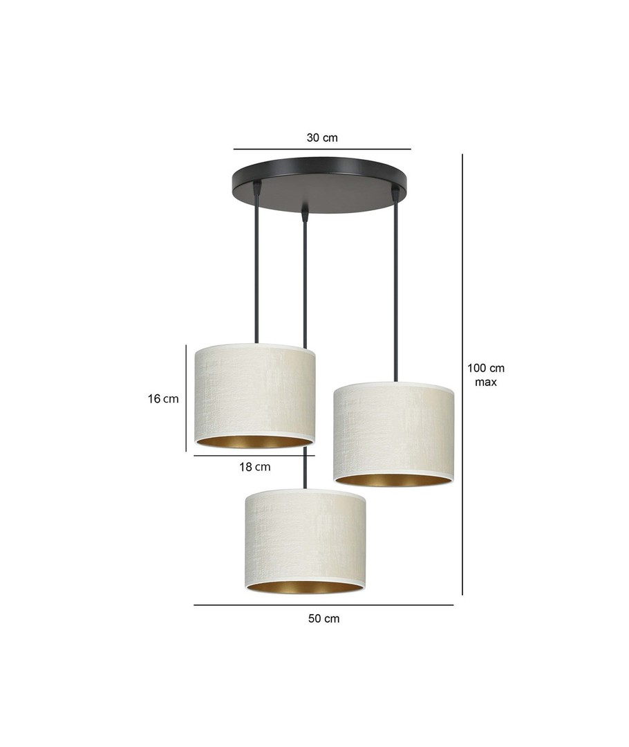 Hilde 3 Sort Premium Hvit pendellampe er den perfekte blanding av eleganse og funksjonalitet, skreddersydd for både moderne og klassiske interiører. Denne stilige pendellampen har justerbare ledninger som gir mulighet for personlig tilpasning, slik at du oppnår det ønskede utseendet i hjemmet ditt. Lampeskjermene er fremstilt av holdbart materiale med en fløyelsmyk tekstur og gylne sentre som tilfører en luksuriøs touch. Med sin enkle konstruksjon og sofistikerte fargesammensetning er denne lampen en allsidig løsning for et mangfold av rom.