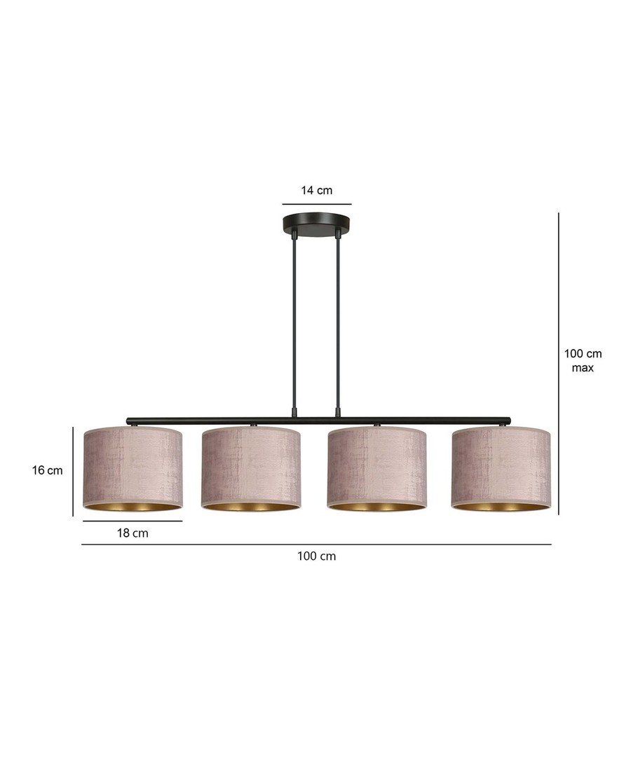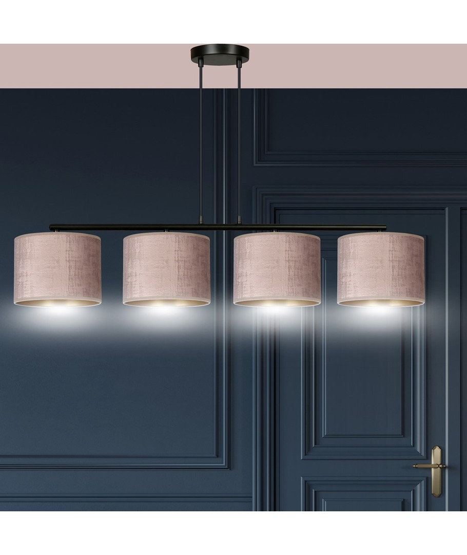 Gjør hjemmet ditt mer elegant med den stilfulle Hilde 4 pendellampe i en kombinasjon av sort og rosa. Denne lampen er perfekt for de som ønsker å legge til et moderne og sofistikert preg i rommet.