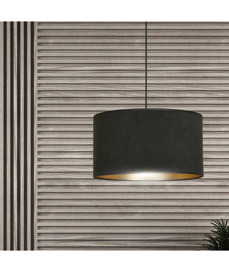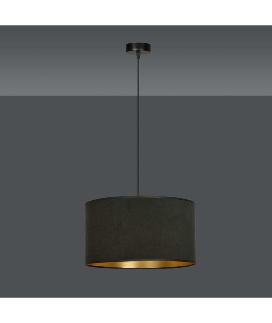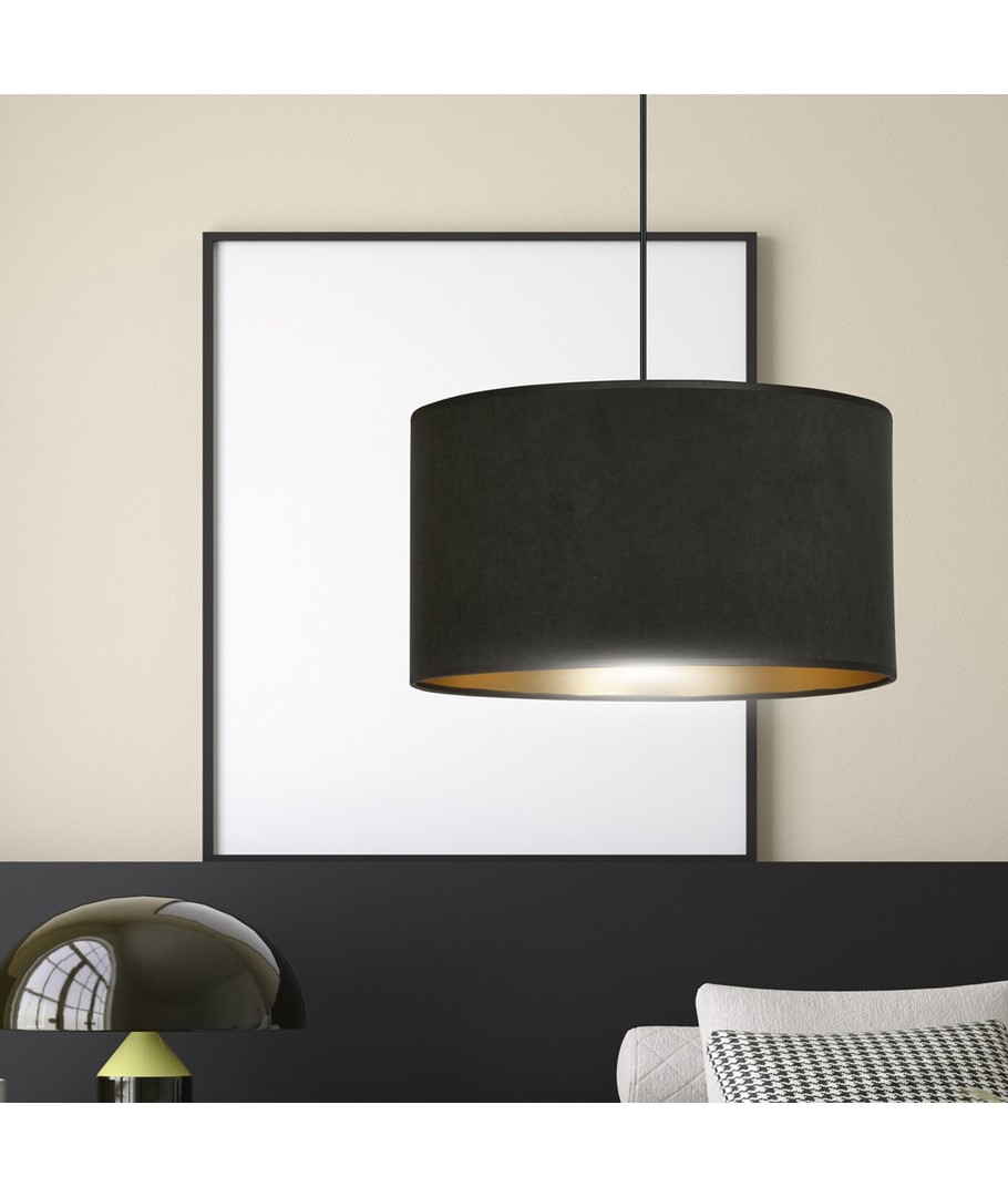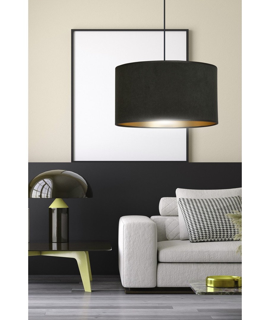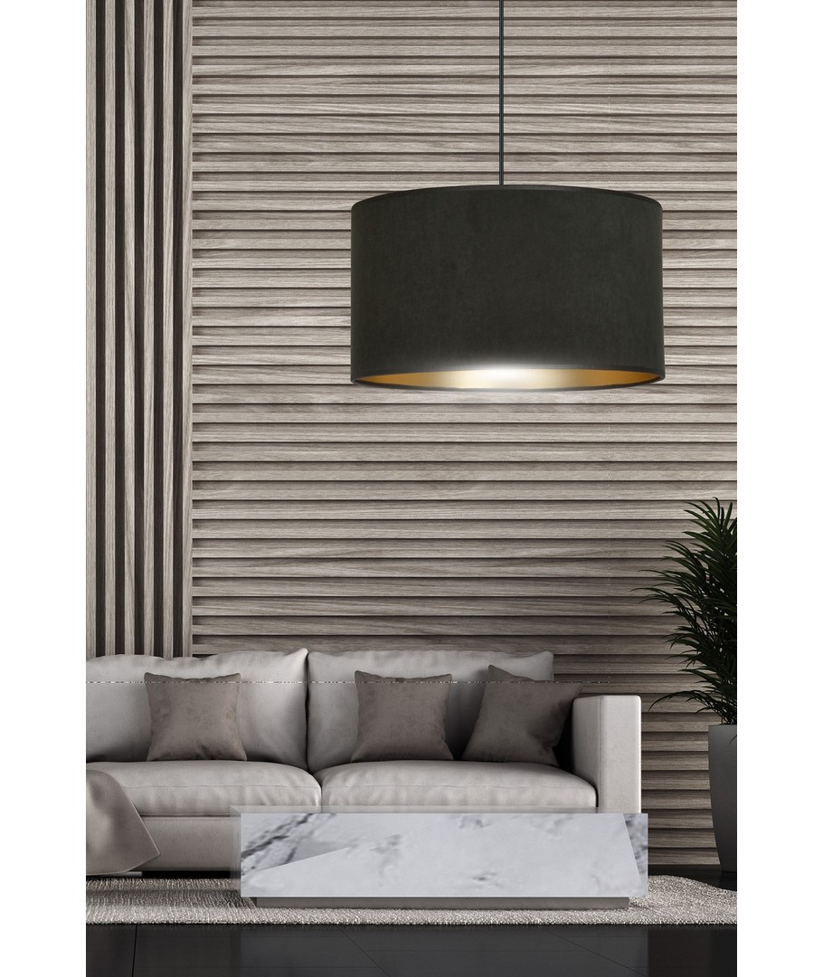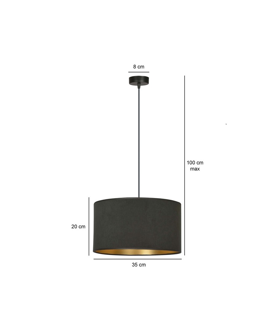 Hilde 1 Sort pendellampe kombinerer moderne design med klassiske elementer, noe som gjør den til det perfekte valget for enhver innredning. Den elegante sorte fargen med den gylne innsiden av lampeskjermen skaper en luksuriøs og varm atmosfære i rommet. Lampen er designet med en justerbar ledning, slik at du kan tilpasse høyden etter ditt behov. Den velouraktige teksturen på skjermen tilfører en raffinert eleganse, mens den enkle konstruksjonen sikrer at lampen passer perfekt inn i både moderne og tradisjonelle miljøer.