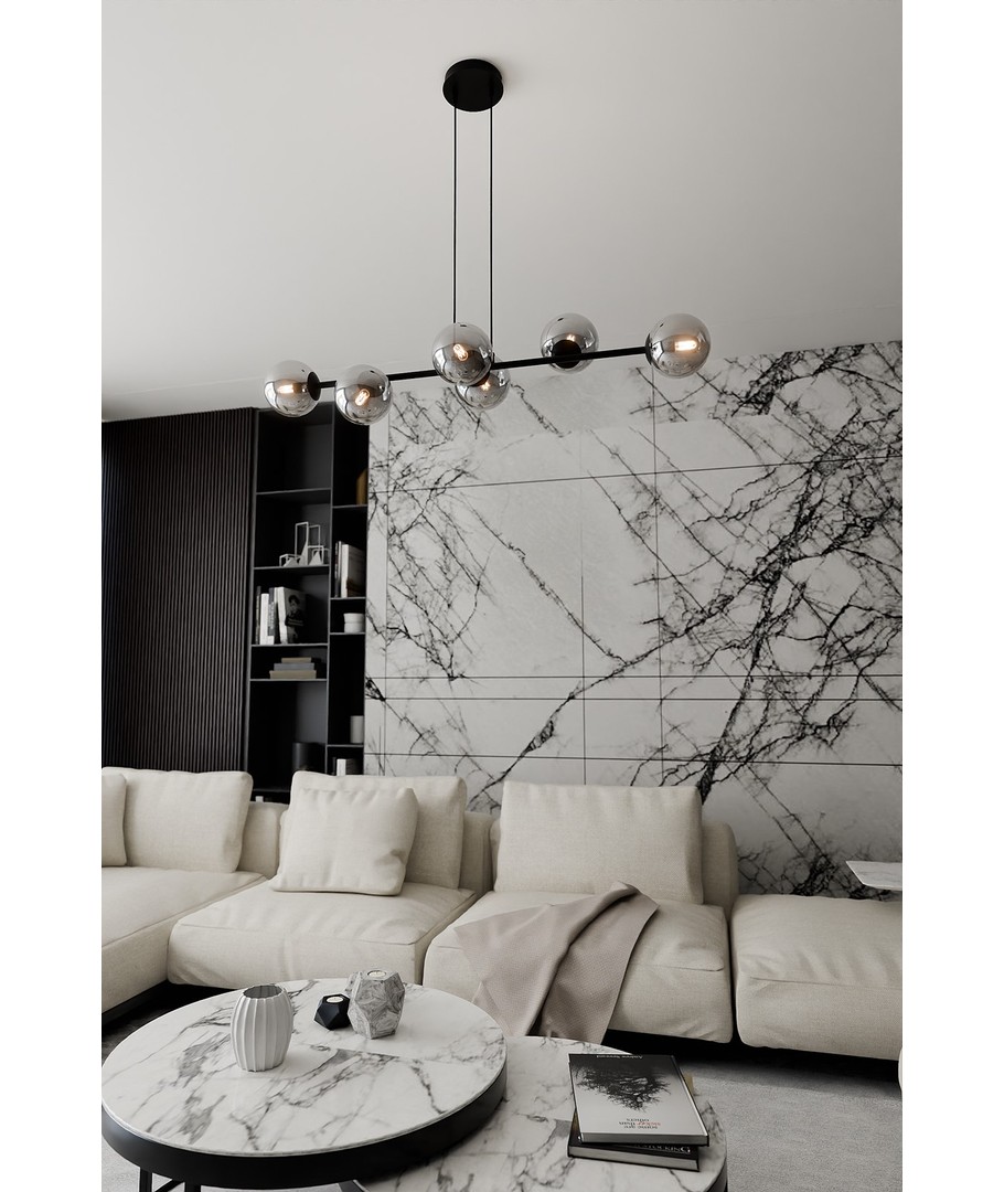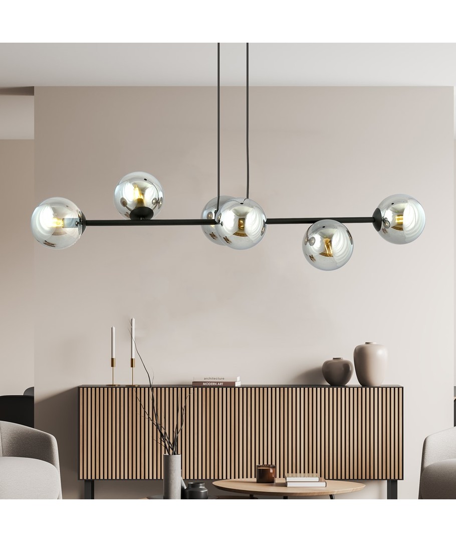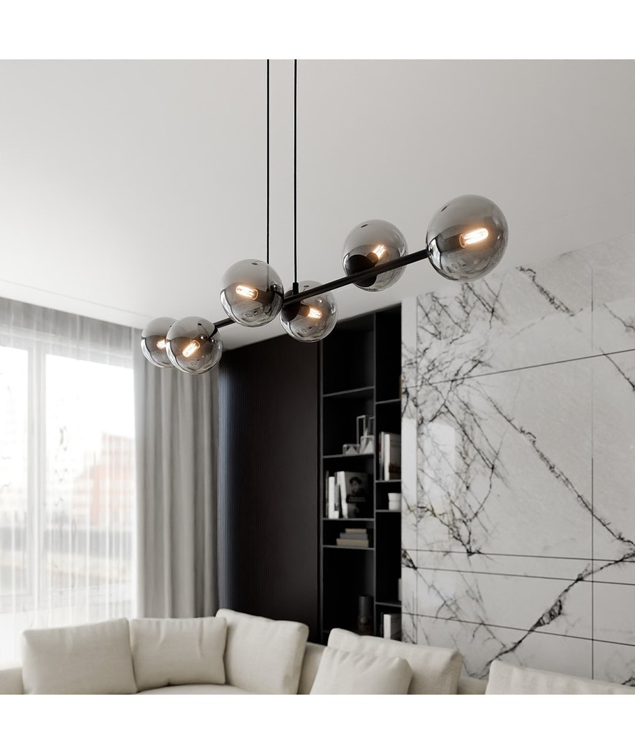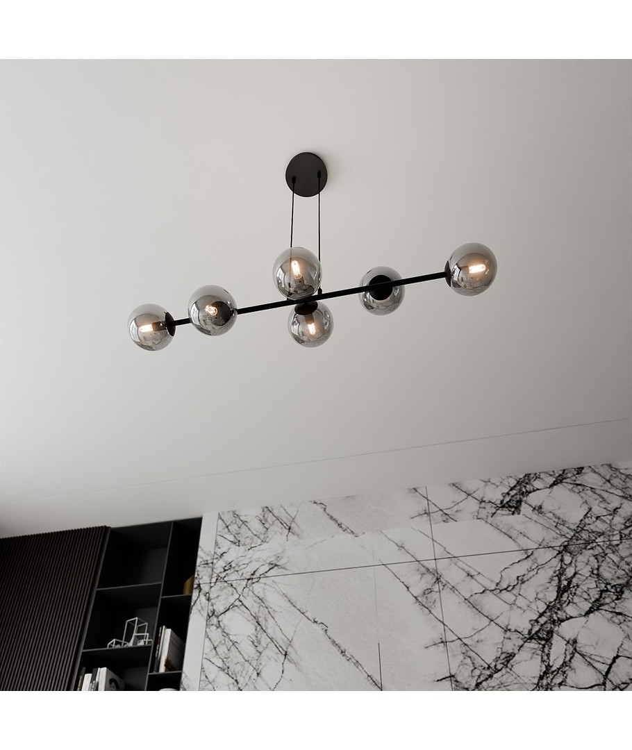 Rossi 6 Sort/Grafitt pendellampe er designet med et stilrent uttrykk som enkelt tilpasser seg ulike interiørstiler. Denne lampen gir rommet ditt et moderne preg samtidig som den gir tilstrekkelig belysning.