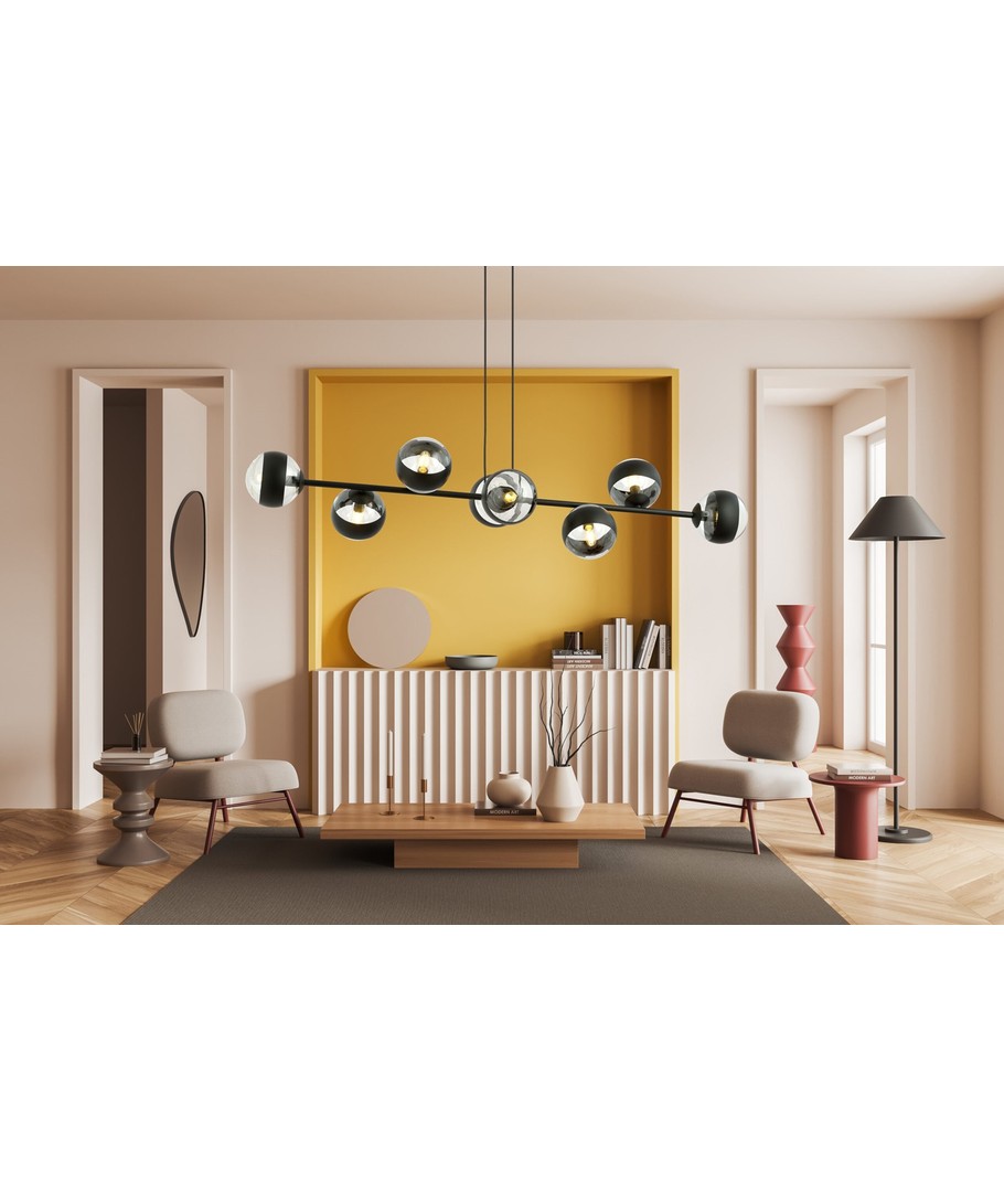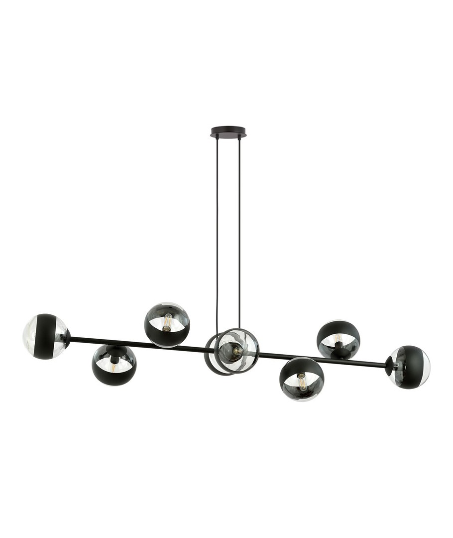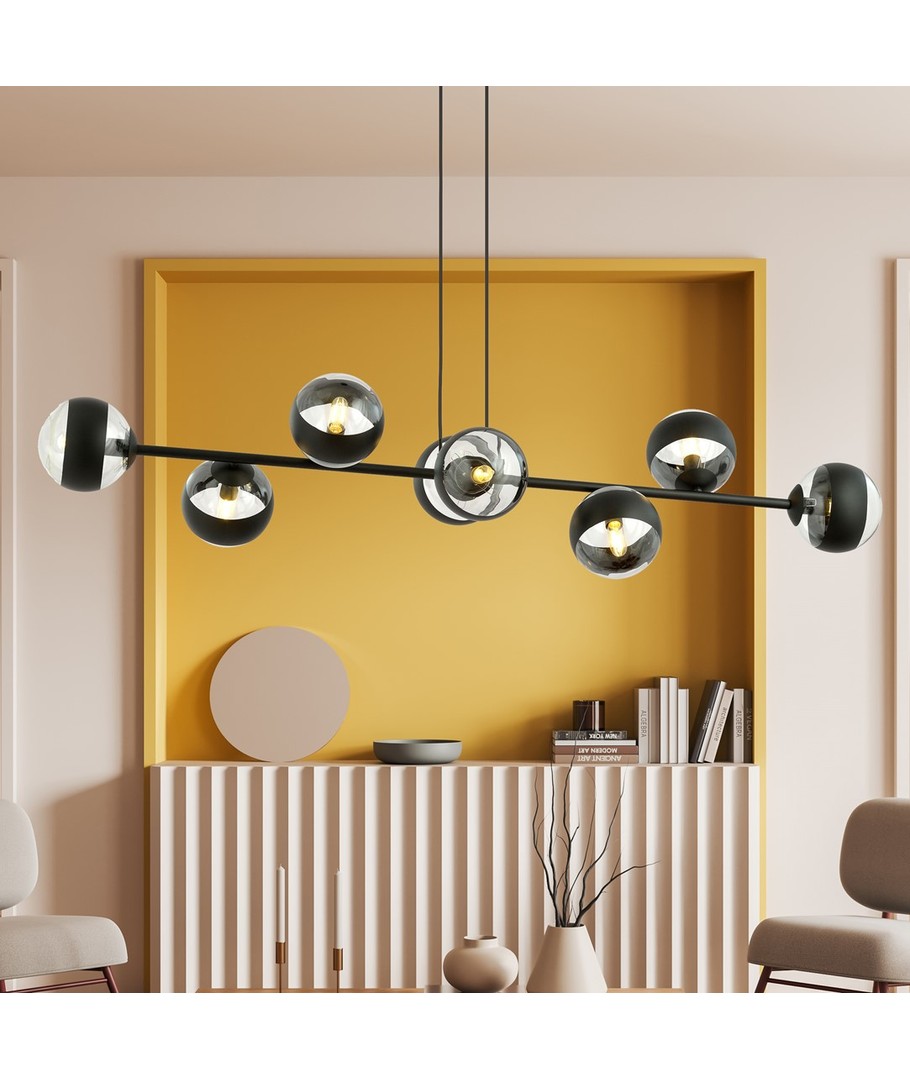 Opplev den moderne elegansen med ROSSI 8 Sort Stripe pendellampe. Designet for å komplementere både moderne og klassiske innredninger, bringer denne pendellampen en subtil skjønnhet inn i ditt hjem. De minimalistiske linjene og trendy glasskupler sikrer en optimal lysfordeling som både opplyser og forskjønner ethvert rom. Med justerbar høyde kan lampen tilpasses alle romforhold og fremhever dens allsidige karakter ytterligere. ROSSI-lampen er det perfekte valget for de som søker tidløs stil kombinert med funksjonell belysning.