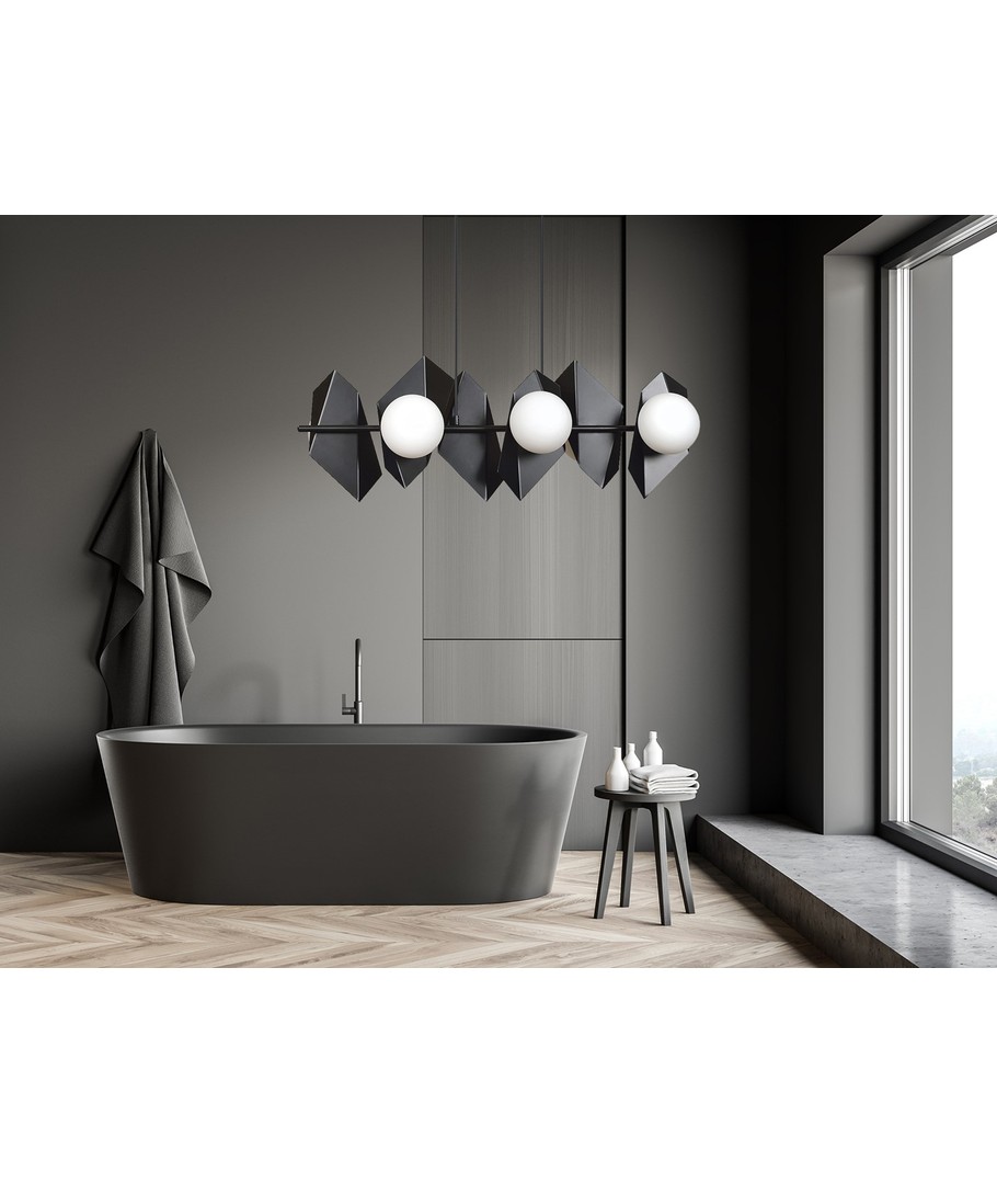 Opplev den moderne elegansen med Drifton 6 Sort pendellampe, som kombinerer innovasjon og stil. Denne pendellampen har en unik geometrisk metallstruktur som straks fanger oppmerksomheten og tilfører et spennende, dekorativt element til hjemmet ditt. Med sitt sorte pulverlakkerte stål og hvite glasskjermer, er Drifton ikke bare en lyskilde, men et kunstverk som beriker innredningen din. Lampens justerbare høyde gjør den til et fleksibelt valg som passer til mange typer rom og behov.