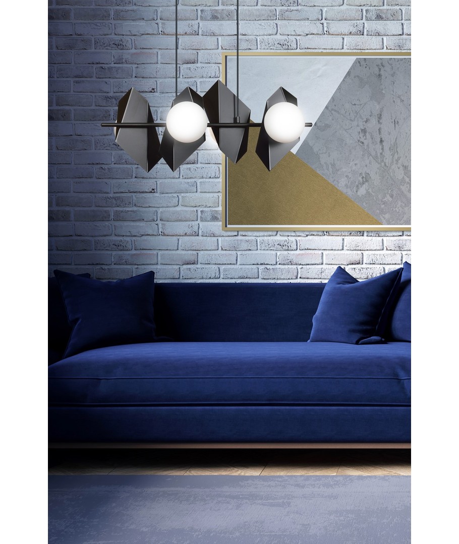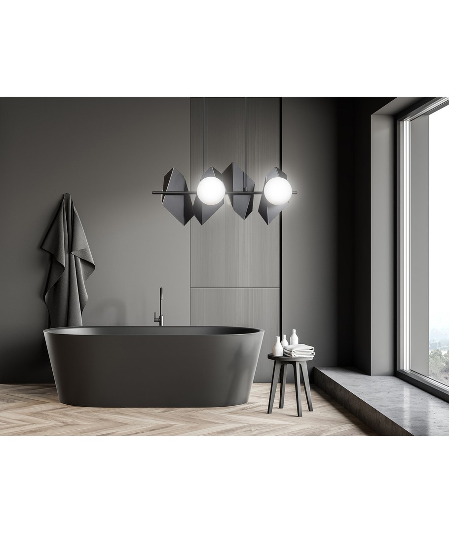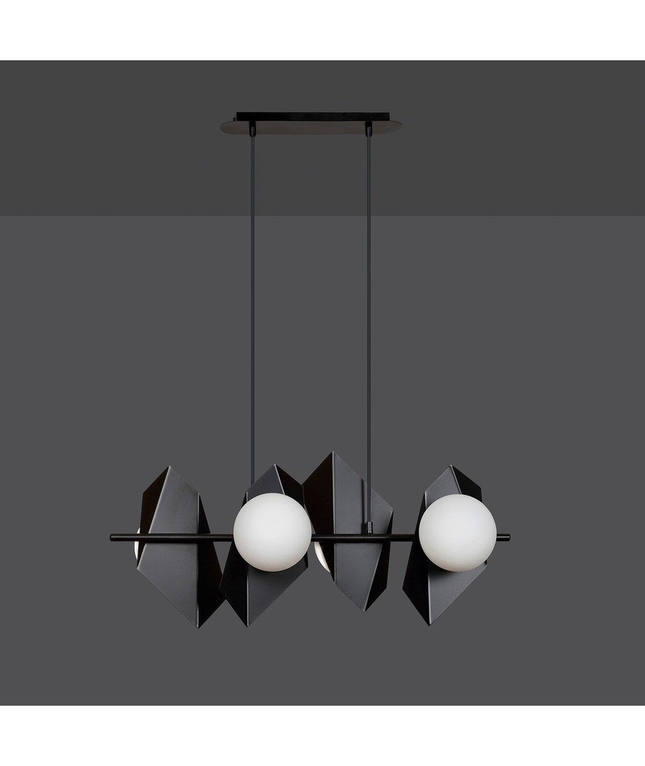 Drifton 4 Sort pendellampe er en moderne og stilfull løsning til ditt hjem. Med sin unike geometriske form og elegante design bringer den flair og personlighet til ethvert rom. Lampens pulverlakkerte stålstruktur kombinert med hvite lampeskjermer skaper et iøynefallende uttrykk.
