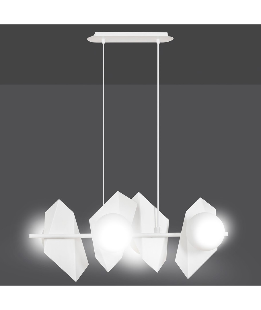 Opplev den moderne elegansen med Drifton 4 Hvit pendellampe. Med sitt unike geometriske design vil denne lampen helt sikkert tiltrekke oppmerksomhet og fungere som et fremtredende element i ethvert rom. Den er ideell for dem som søker en sofistikert og stilren belysningsløsning.