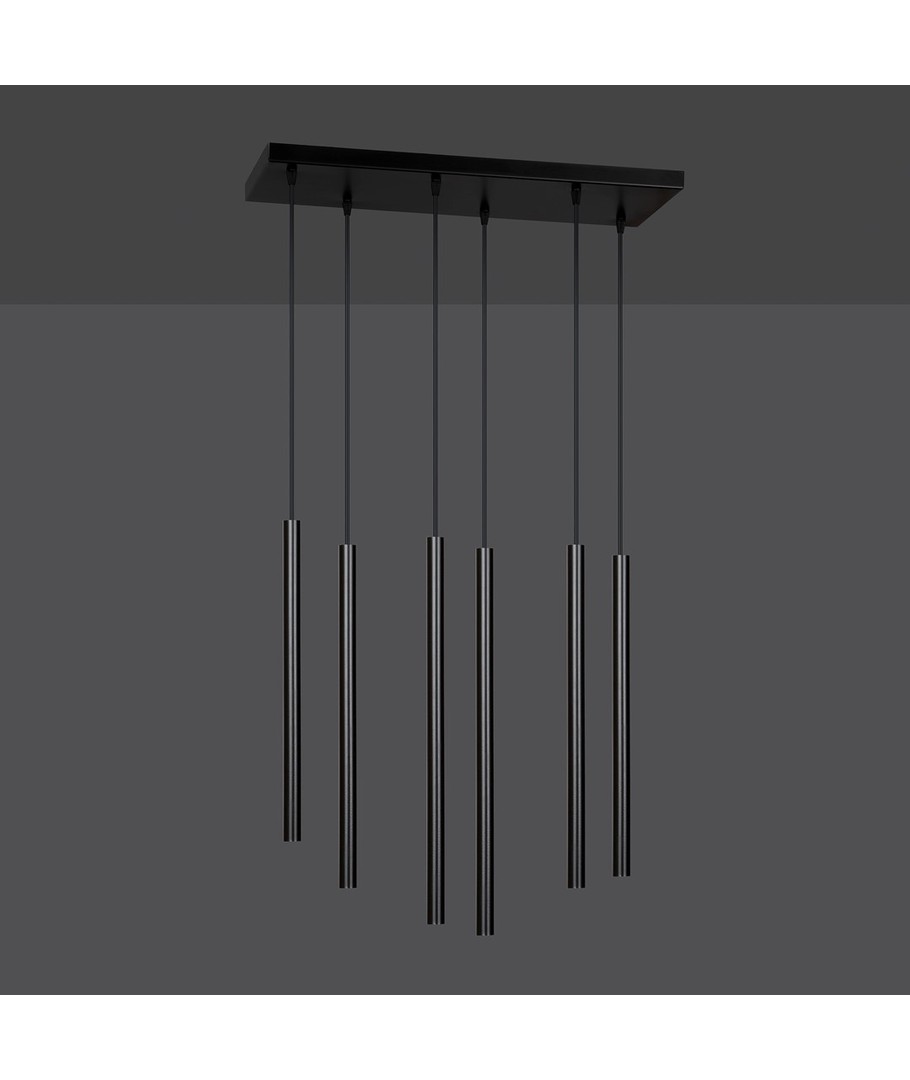 Selter 6 Sort pendellampe er en ultramoderne taklampe som imponerer med sine lange, slanke metalarmer og elegante struktur. Designet fremstår lett og ekstremt originalt, noe som gjør den til et utmerket valg for de som søker utradisjonelle løsninger og en trendy, distinkt stil. Optimal for moderne interiør, der stil og funksjonalitet møtes.