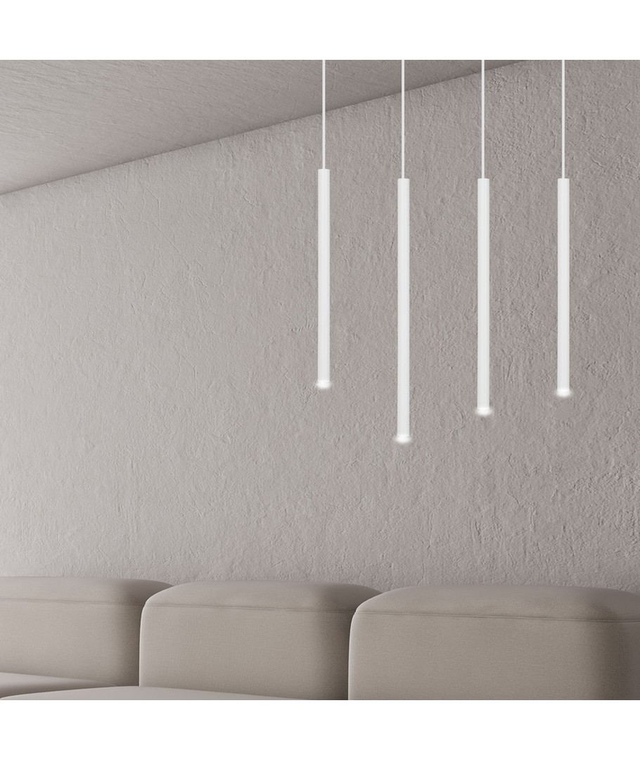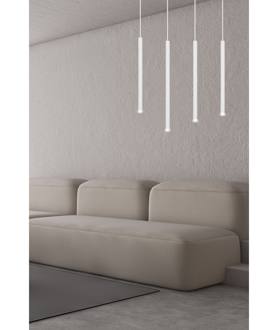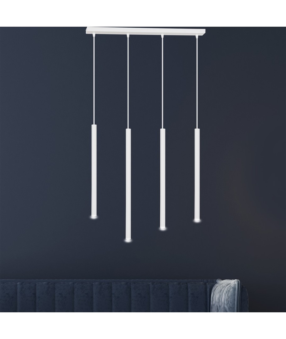 Selter 4 Hvit pendellampe er designet for å være det perfekte blikkfang i ethvert rom. Med sine lange, slanke metallblader og en imponerende elegant struktur tilbyr denne lampen et moderne og stilfullt uttrykk. Den passer perfekt for dem som ønsker en unik og moteriktig belysning som både er funksjonell og dekorativ. Lampens lette design og hvitlakkert finish gjør den ideell for moderne interiører, hvor lys og estetikk går hånd i hånd.