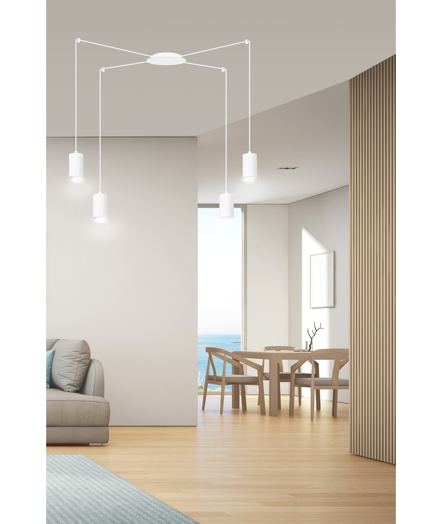 Skap et moderne utseende i dine rom med Traker 4/hvit pendellampe.