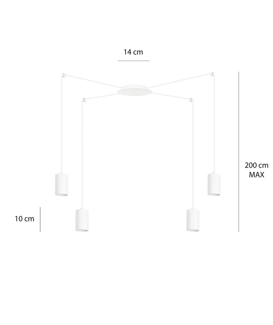 Traker 4/hvit pendellampe er en elegant og moderne taklampe som bringer et snev av sofistikert design inn i ditt hjem. Med dens edderkopplignende form og lange ledninger kan lampen tilpasses mange forskjellige interiører, noe som gjør den ideell for høye takområder som loftsrom. Den stilfulle kombinasjonen av metallrør i pulverlakkert stål gir lampen et unikt og originalt uttrykk i sin enkelhet. Traker-seriens minimalistiske design understreker lampens evne til ikke bare å lyse opp et rom vakkert, men også bli en sentral del av innredningen.