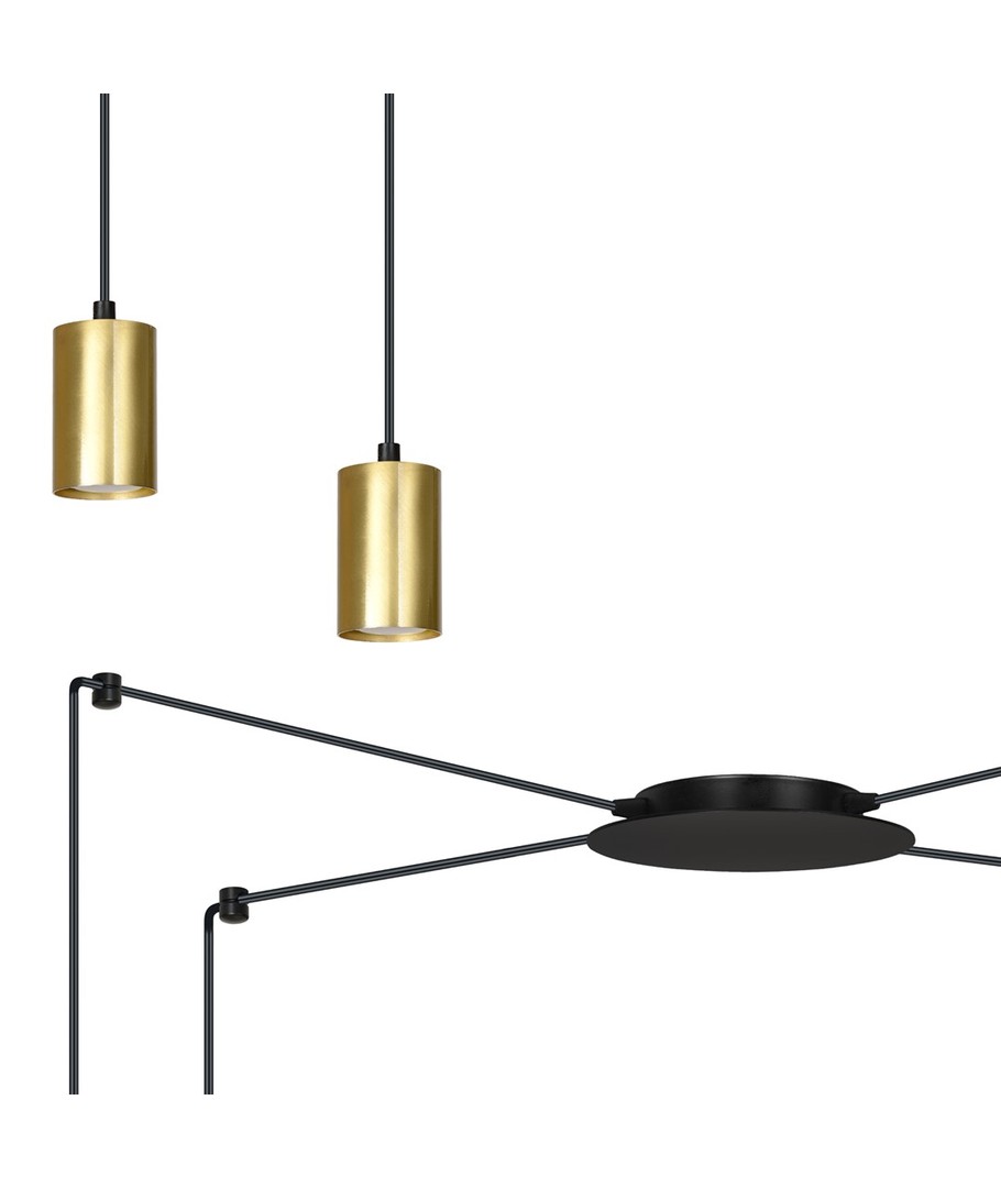Opplyst ditt rom med den elegante Traker 4 pendellampe som kombinerer stil og funksjonalitet. Denne lampen er designet for å tilføre et moderne preg til ethvert interiør, og dens sort/gull finish gjør den til et sofistikert innslag i hjemmet ditt.