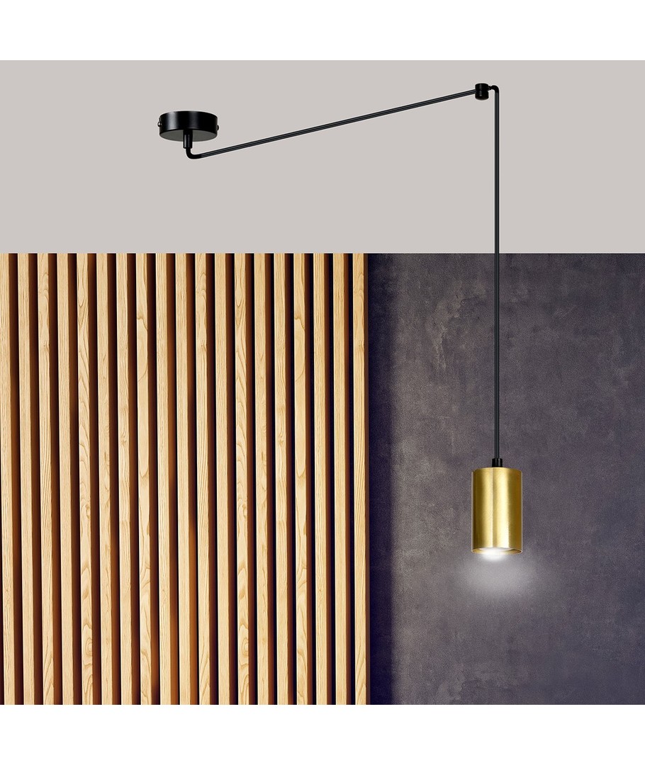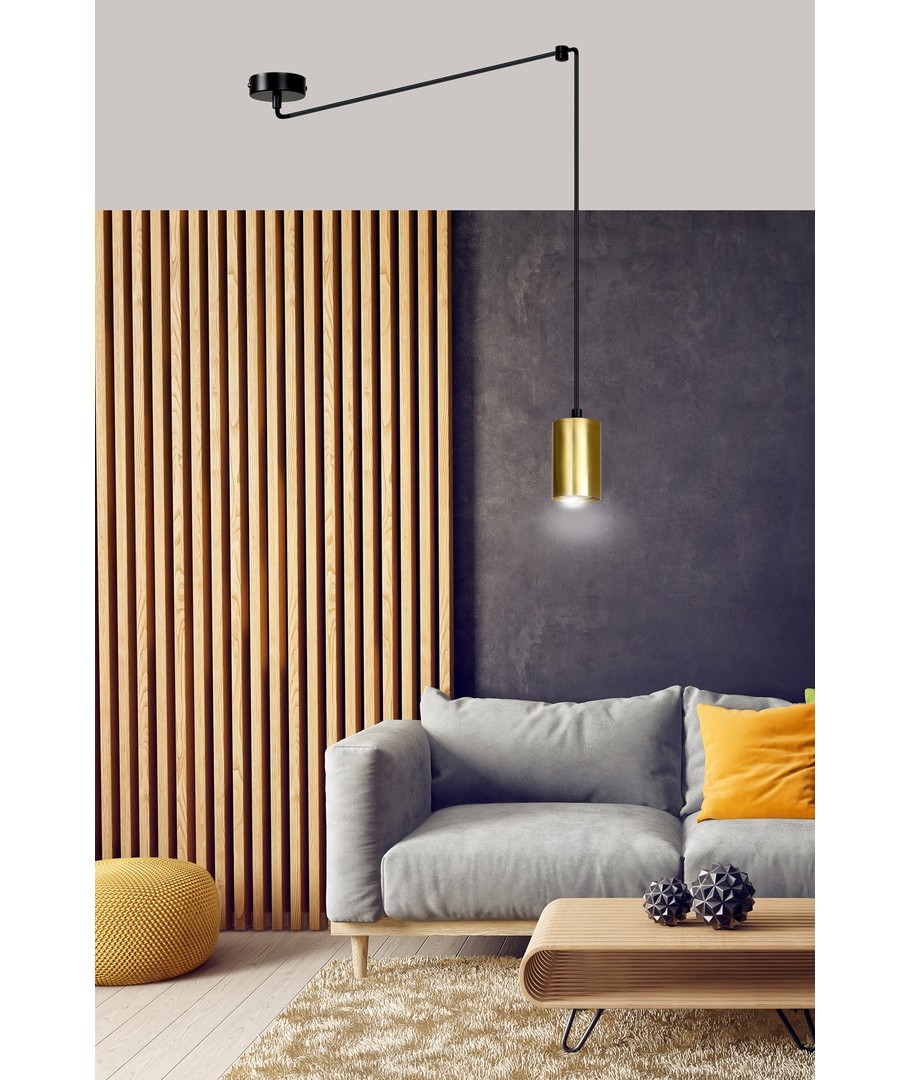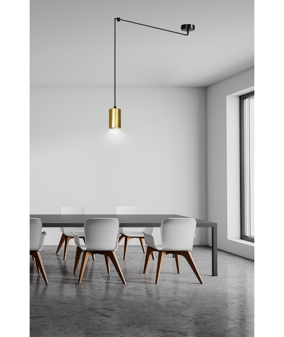 Traker 1 Sort/Gull pendellampe er det perfekte tilskuddet for deg som ønsker å skape en stilig og moderne atmosfære i hjemmet ditt. Med sine unike farger i sort og gull gir denne lampen et eksklusivt preg til ethvert rom.