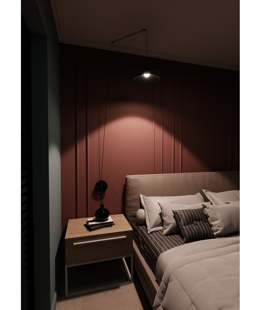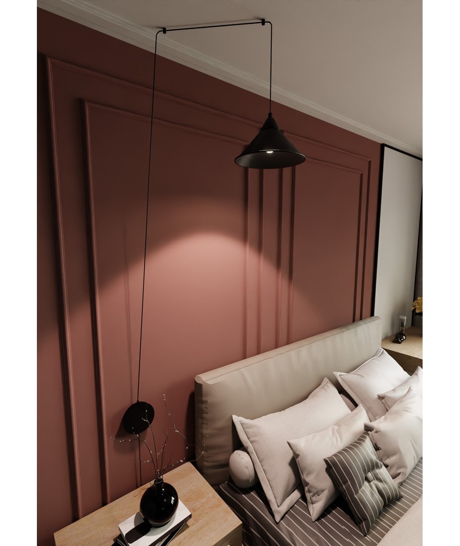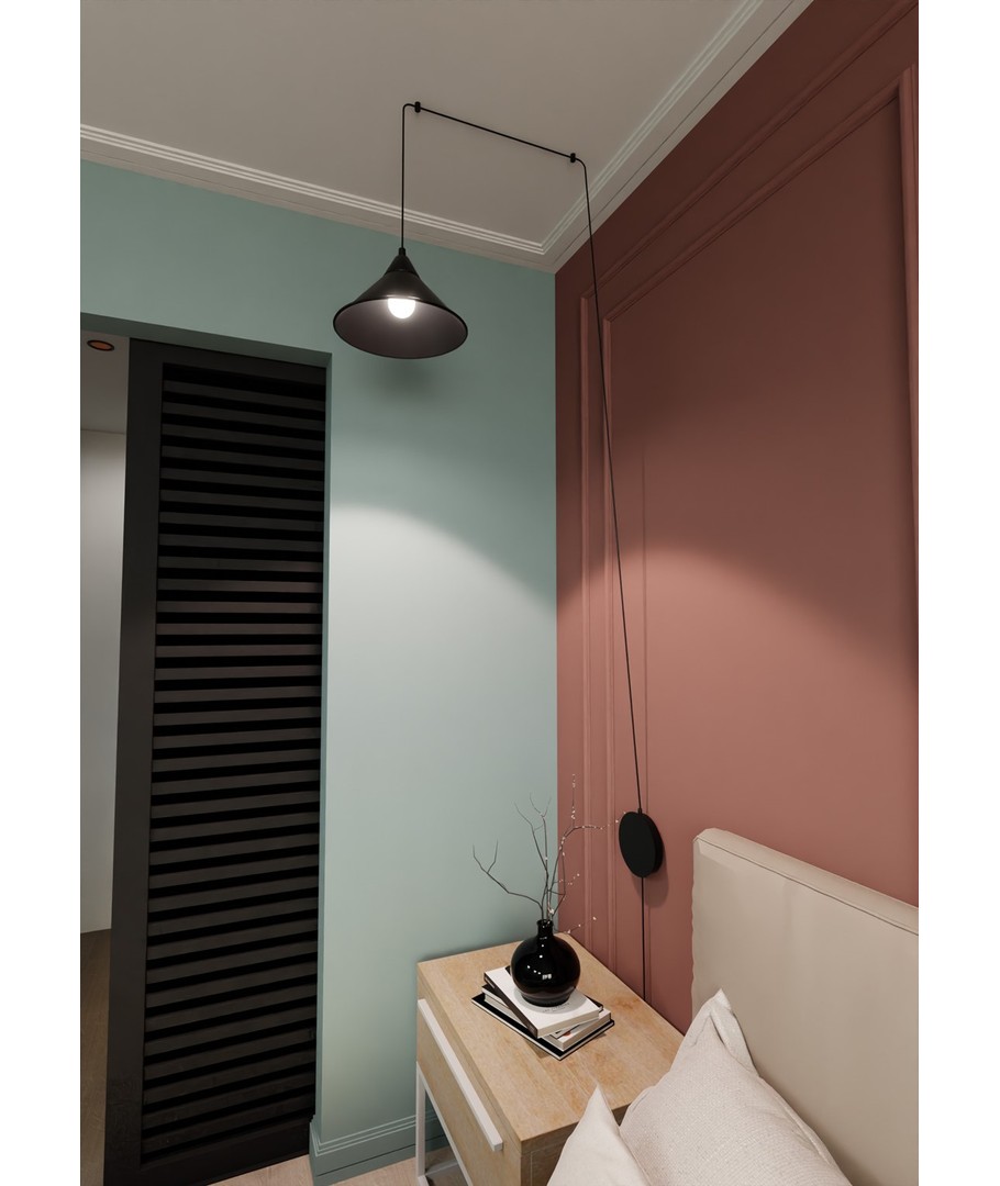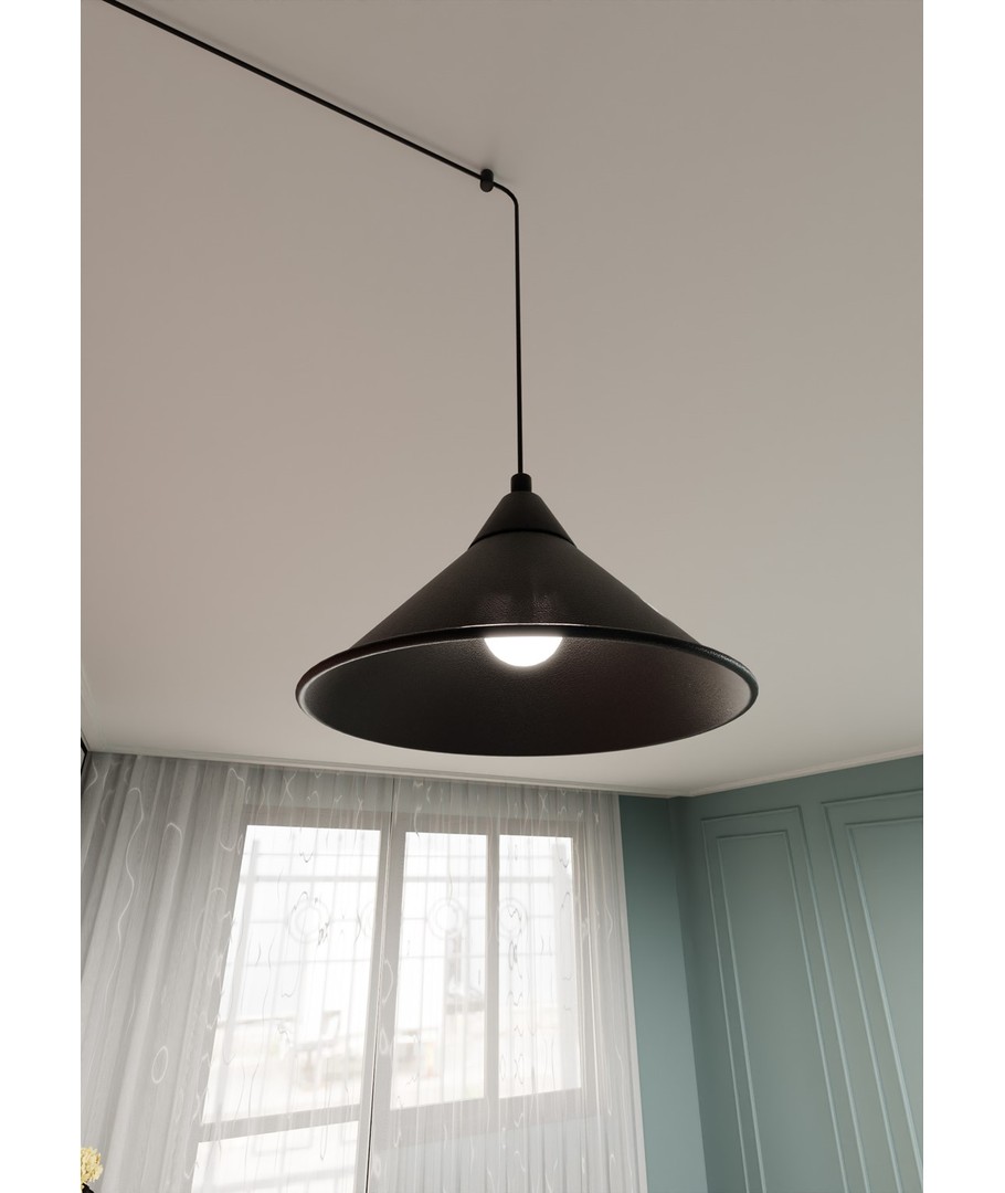 Abramo 1 Sort pendellampe bringer en stilfull og moderne estetikk til ditt hjem. Denne lampen passer perfekt inn i enhver innredningsstil med sitt allsidige design og elegante fremtoning. Abramo-seriens lange ledning og mulighet for veggmontering gir mange muligheter for plassering og tilpasning, noe som gjør det enkelt å belyse ethvert rom nøyaktig slik du ønsker det. Lampens funksjonalitet kombinert med det originale uttrykket skaper en harmonisk atmosfære som er en fryd for øyet.