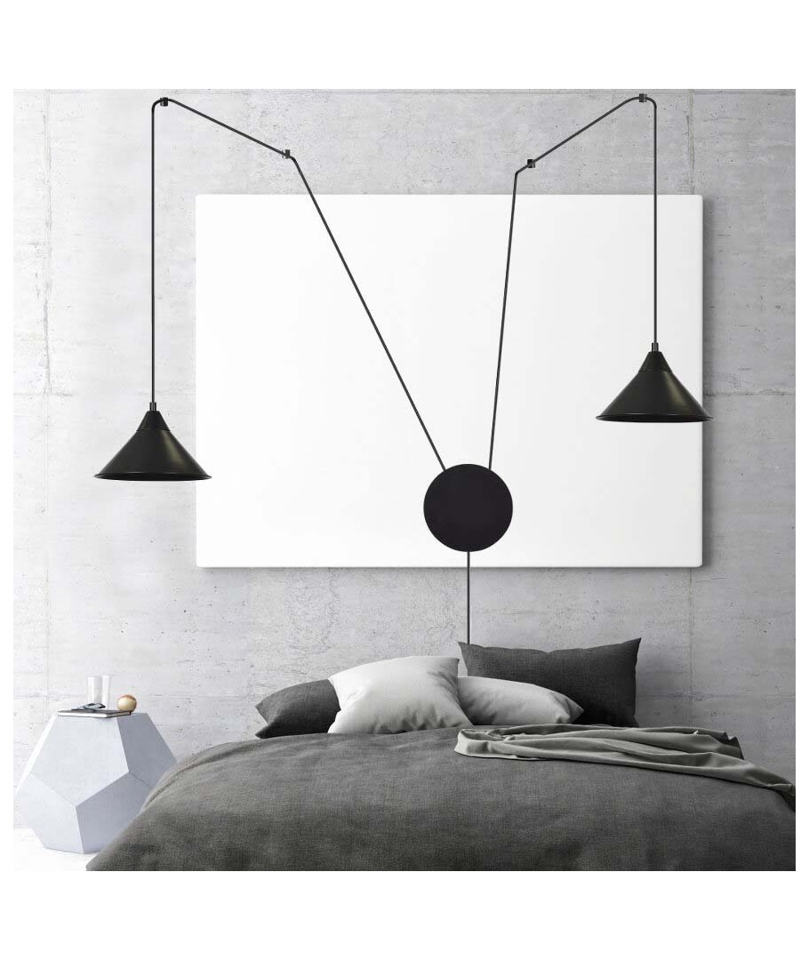 Abramo 2 Sort pendellampe kombinerer et moderne design med allsidighet, som gjør den ideell for ethvert interiør. Lampen har en stilren sort finish og kan både veggmonteres og henge fritt med den lange ledningen, noe som gir utallige innredningsmuligheter. Med sitt unike uttrykk og funksjonalitet skaper Abramo pendellampe en harmonisk og stilfull atmosfære, som enkelt tilpasser seg forskjellige innredningsstiler. Pendellampen er perfekt for å tilføre et snev av eleganse til ditt hjem, mens dens minimalistiske design sikrer at den aldri går av moten.