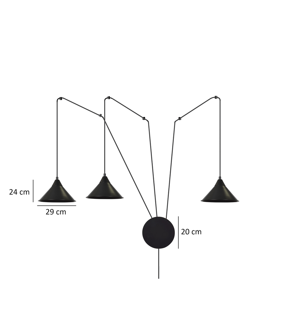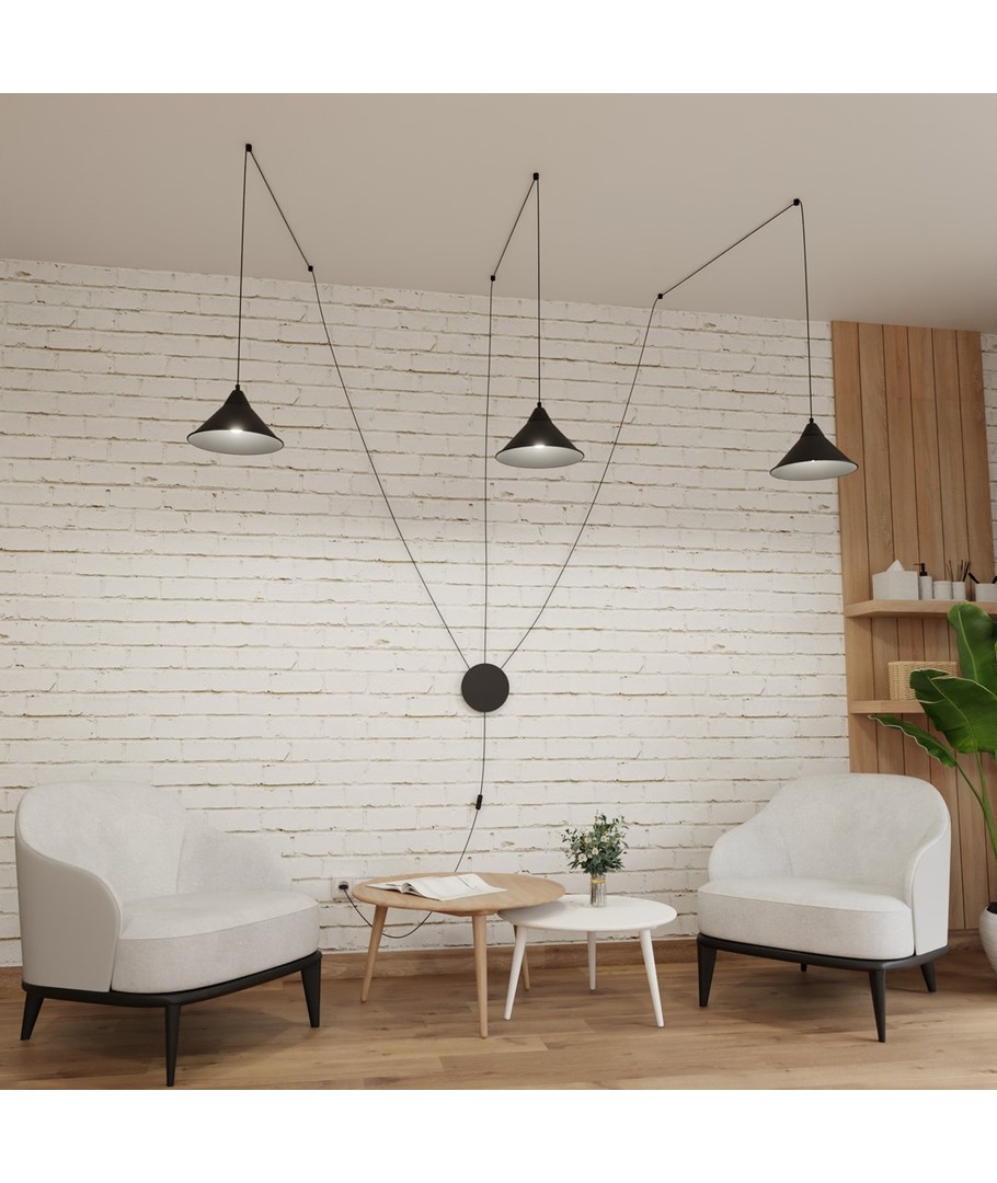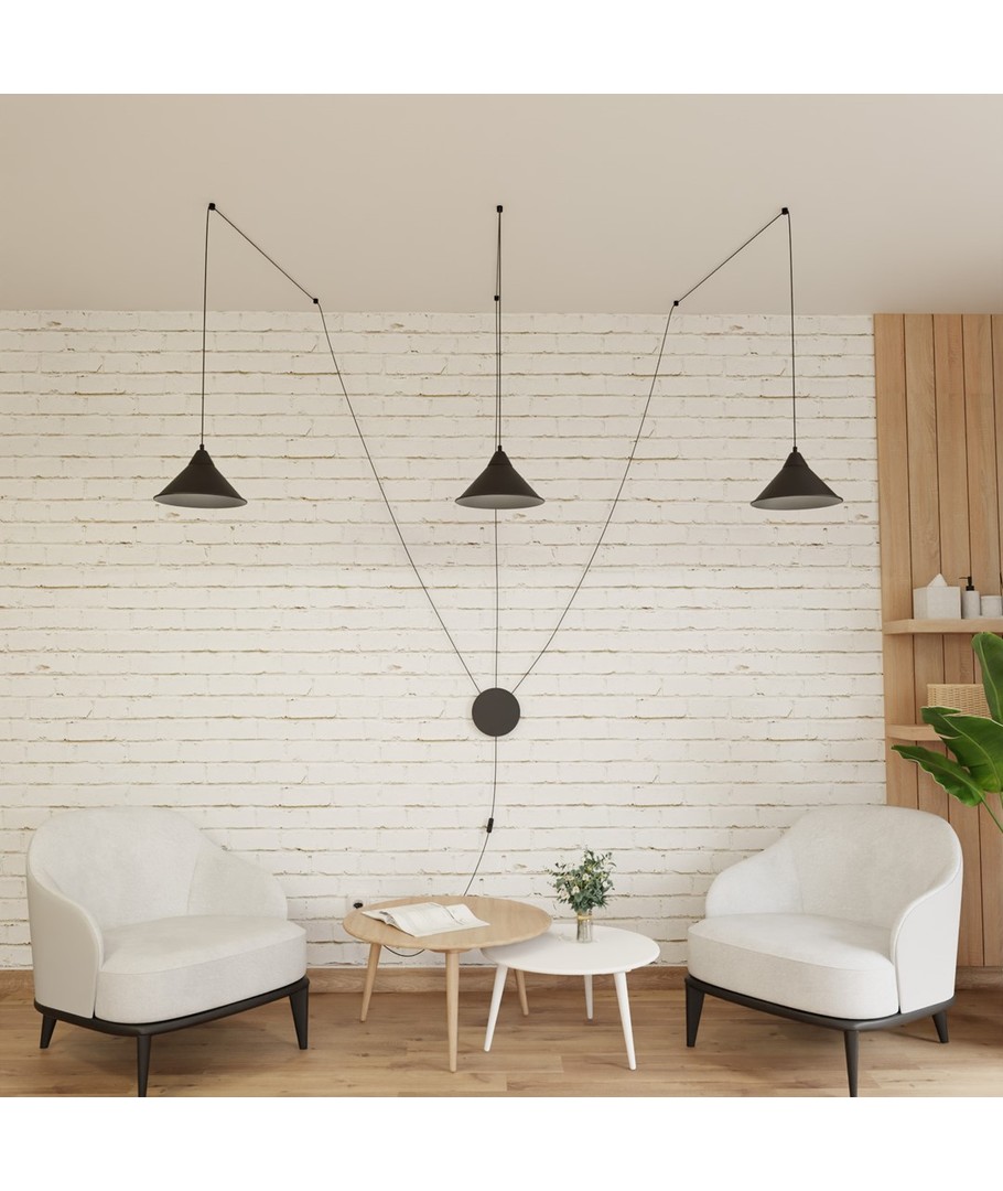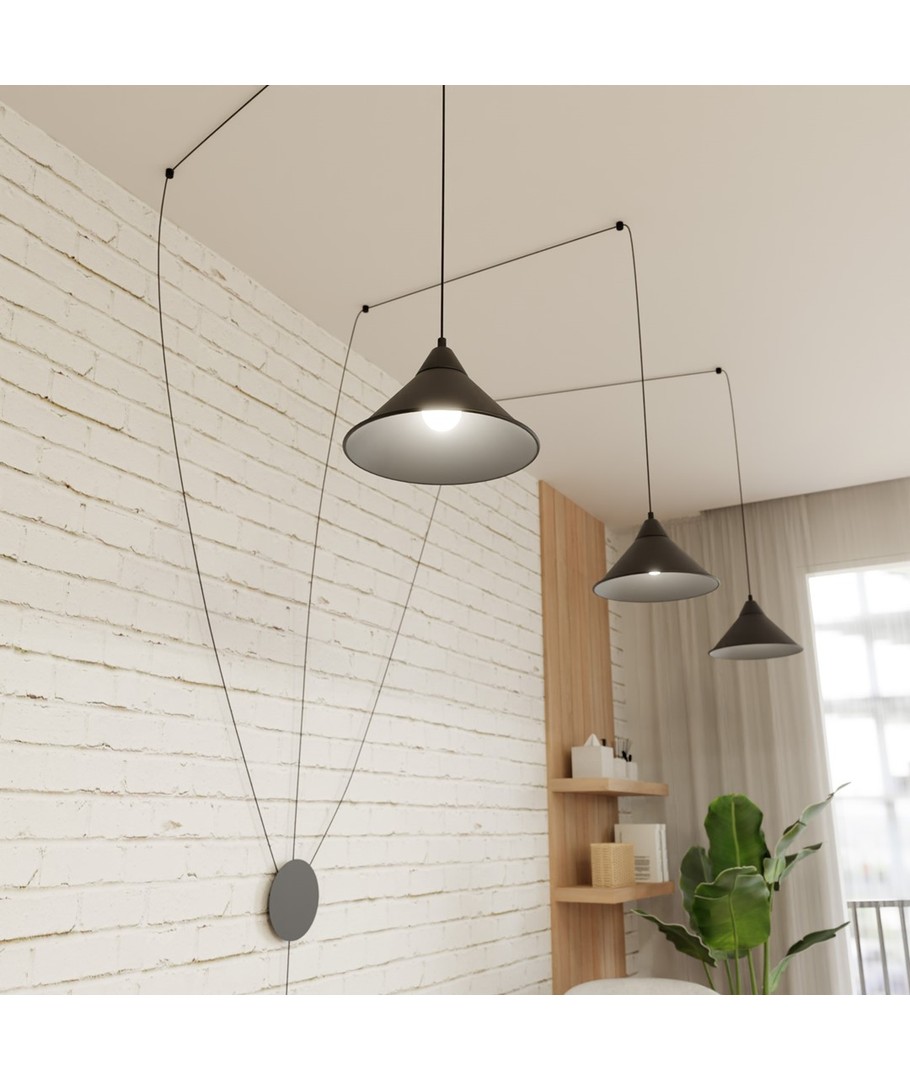 Abramo 3 Sort pendellampe er en del av den eksepsjonelle ABRAMO-serien, som leverer et allsidig design, perfekt for enhver innredning. Med sitt moderne utseende tilpasser denne lampen seg lett til forskjellige innredningsstiler. Den kan monteres på veggen, og med den lange ledningen tilbyr ABRAMO utallige innredningsmuligheter. Funksjonaliteten kombinert med et unikt design skaper en harmonisk dekorasjon som gleder øyet.