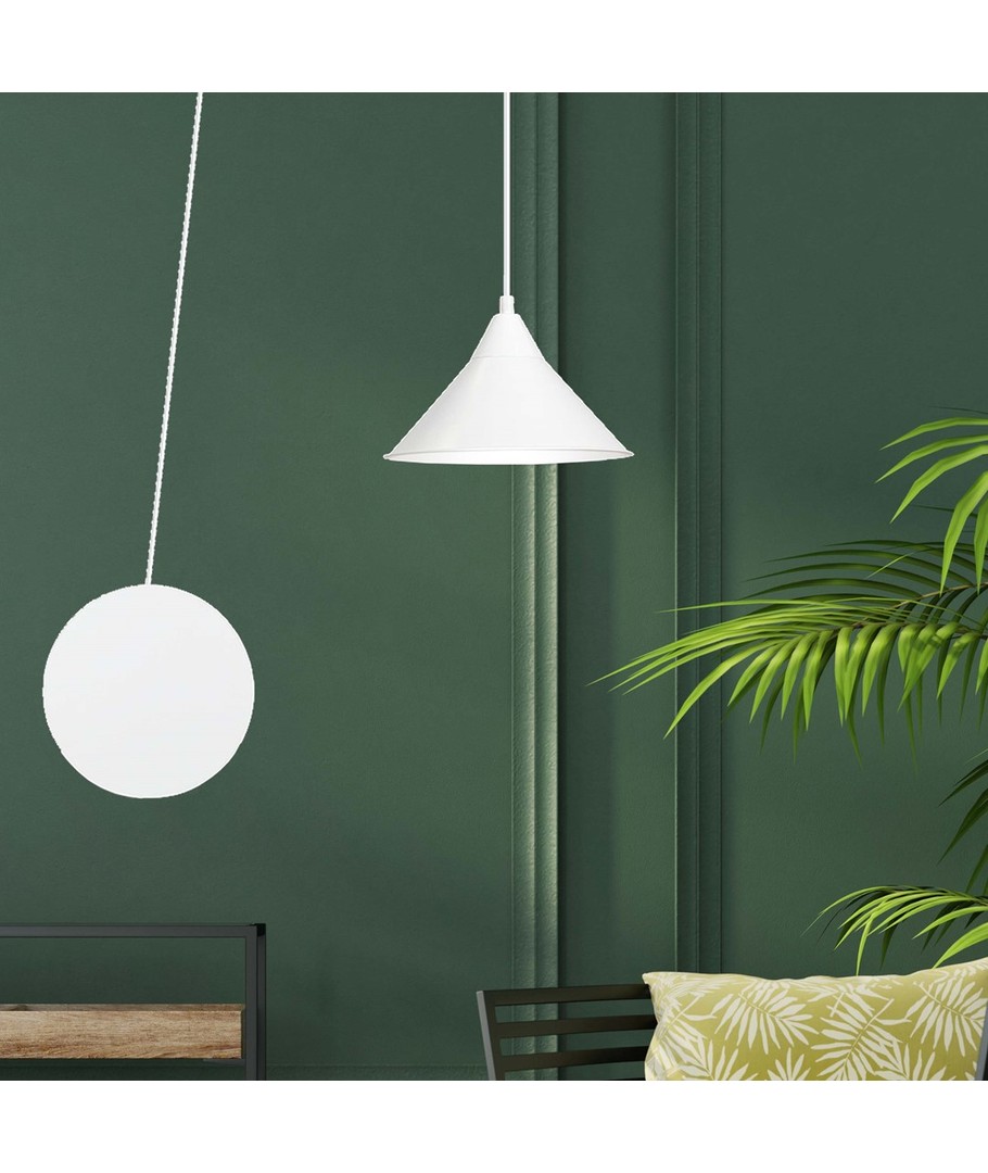 Abramo 1 Hvit pendellampe forener moderne design med allsidighet, noe som gjør den ideell for ethvert hjem. Dens elegante utseende passer lett inn i både moderne og klassiske interiørstiler. Lampen kan monteres på veggen og har en lang ledning som gir fleksible innredningsmuligheter. Abramo-seriens funksjonalitet kombineres med dens unike karakter og skaper en harmonisk atmosfære som er en fryd for øyet.