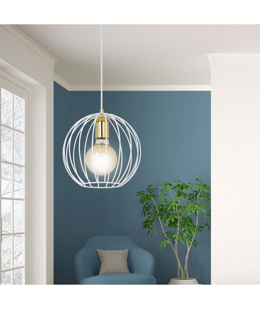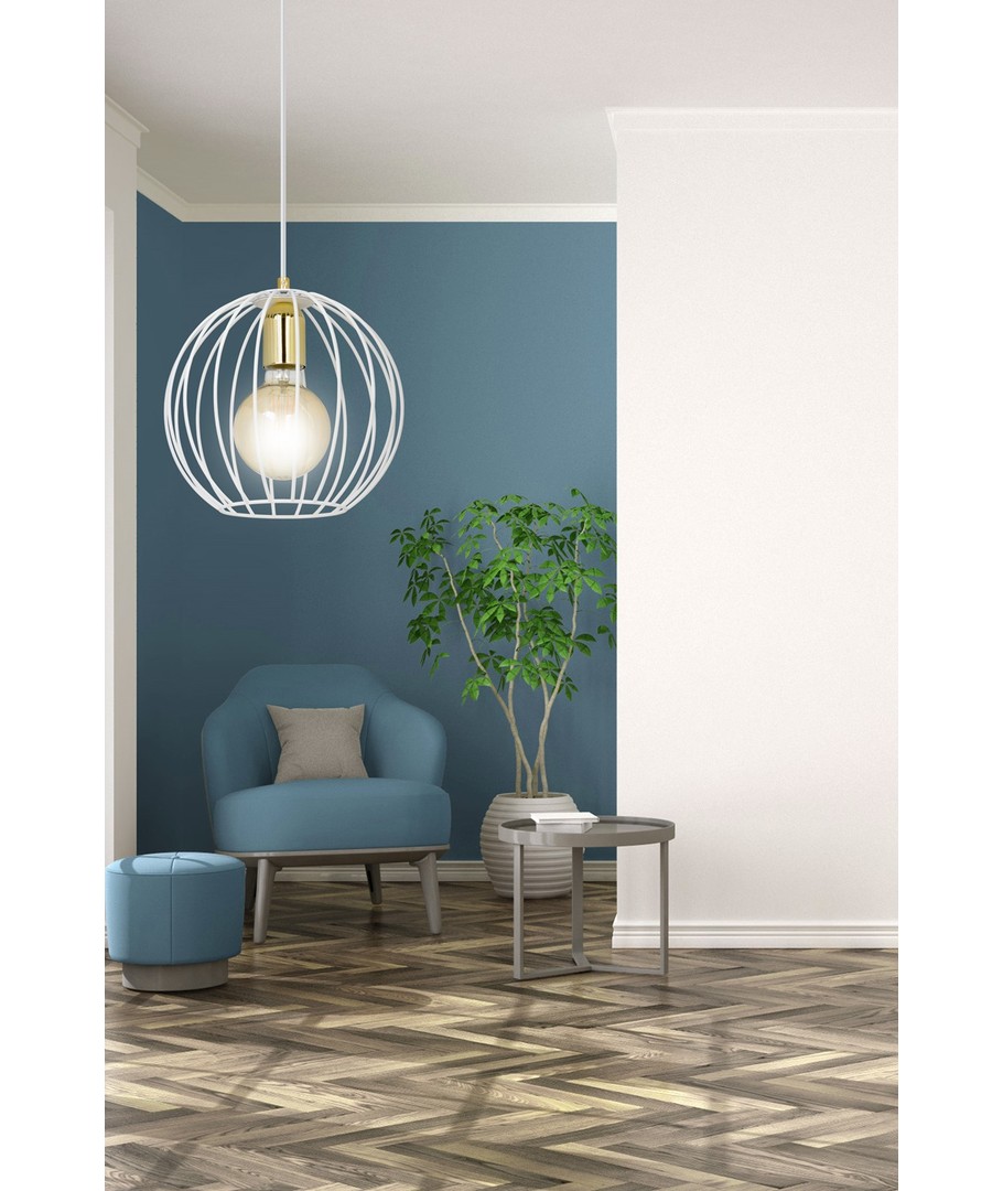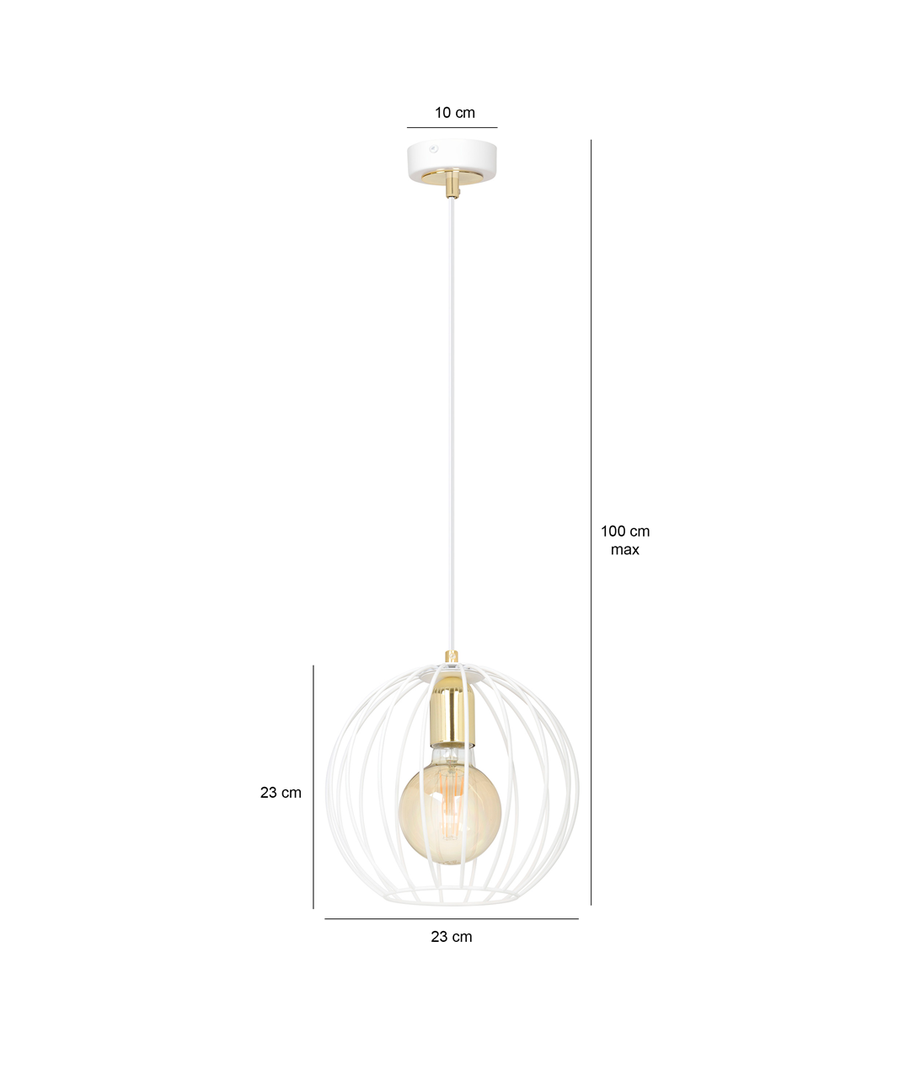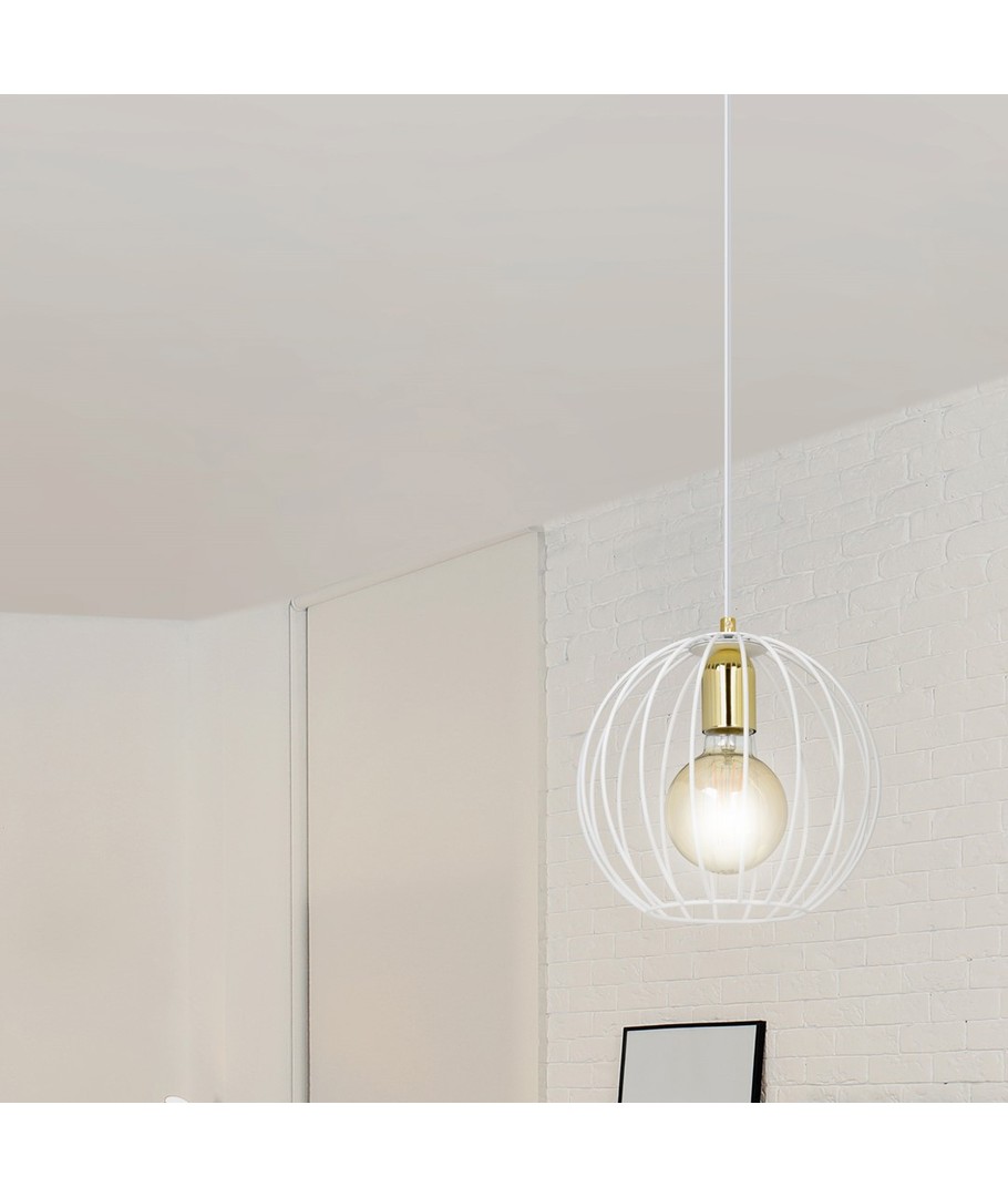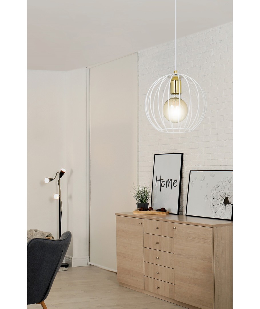 Albio 1 hvit pendellampe kombinerer stil og funksjonalitet med sitt vakre tråddesign og elegante gulldetaljer. Denne lampen er mer enn bare en lyskilde; den er et dekorativt element som tilfører eleganse og karakter til ditt hjem. Designet sikrer effektiv belysning, samtidig som lampens unike utseende fanger blikket og komplementerer enhver moderne innredning. Den justerbare høyden gjør den allsidig og passende for forskjellige rom.