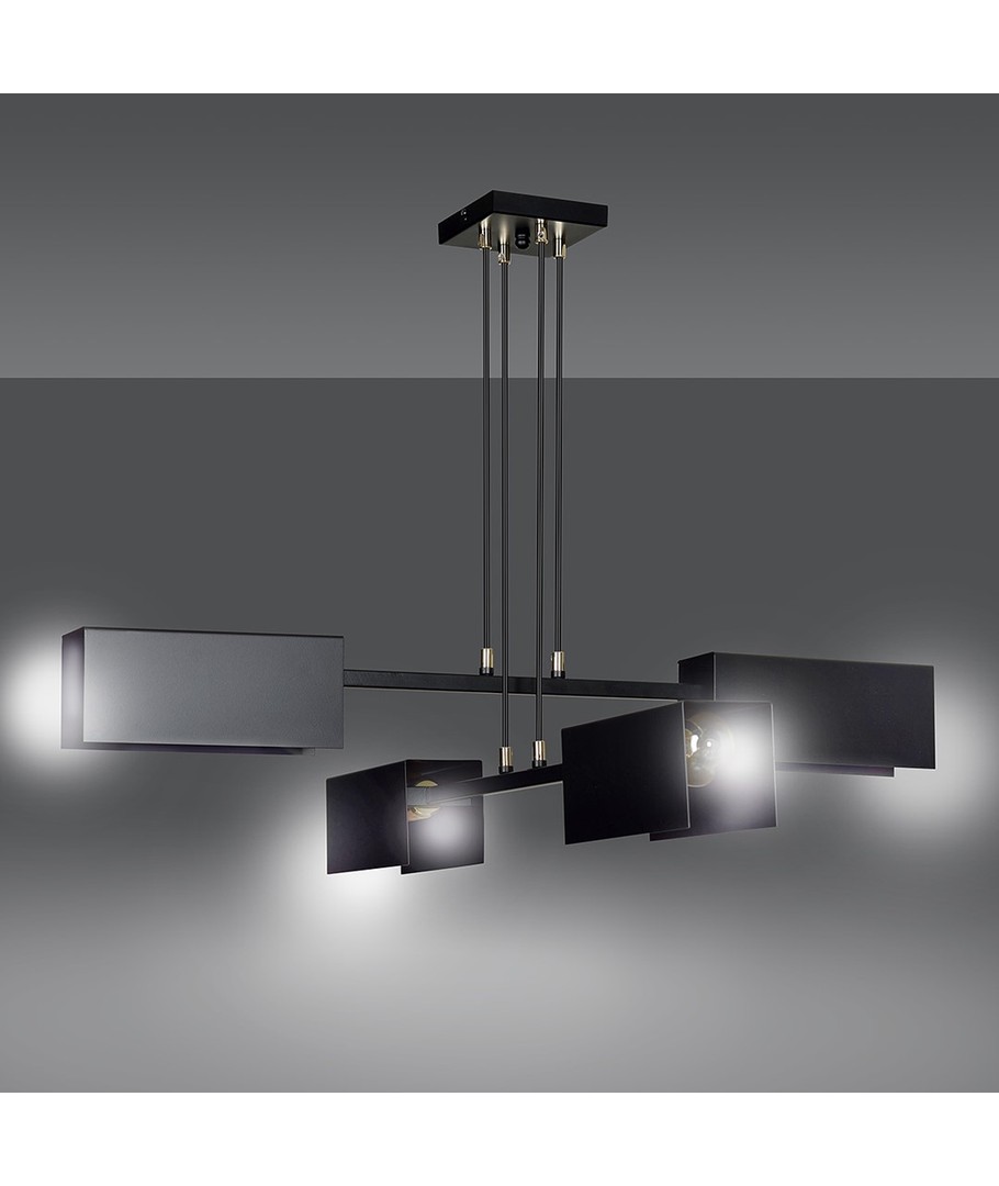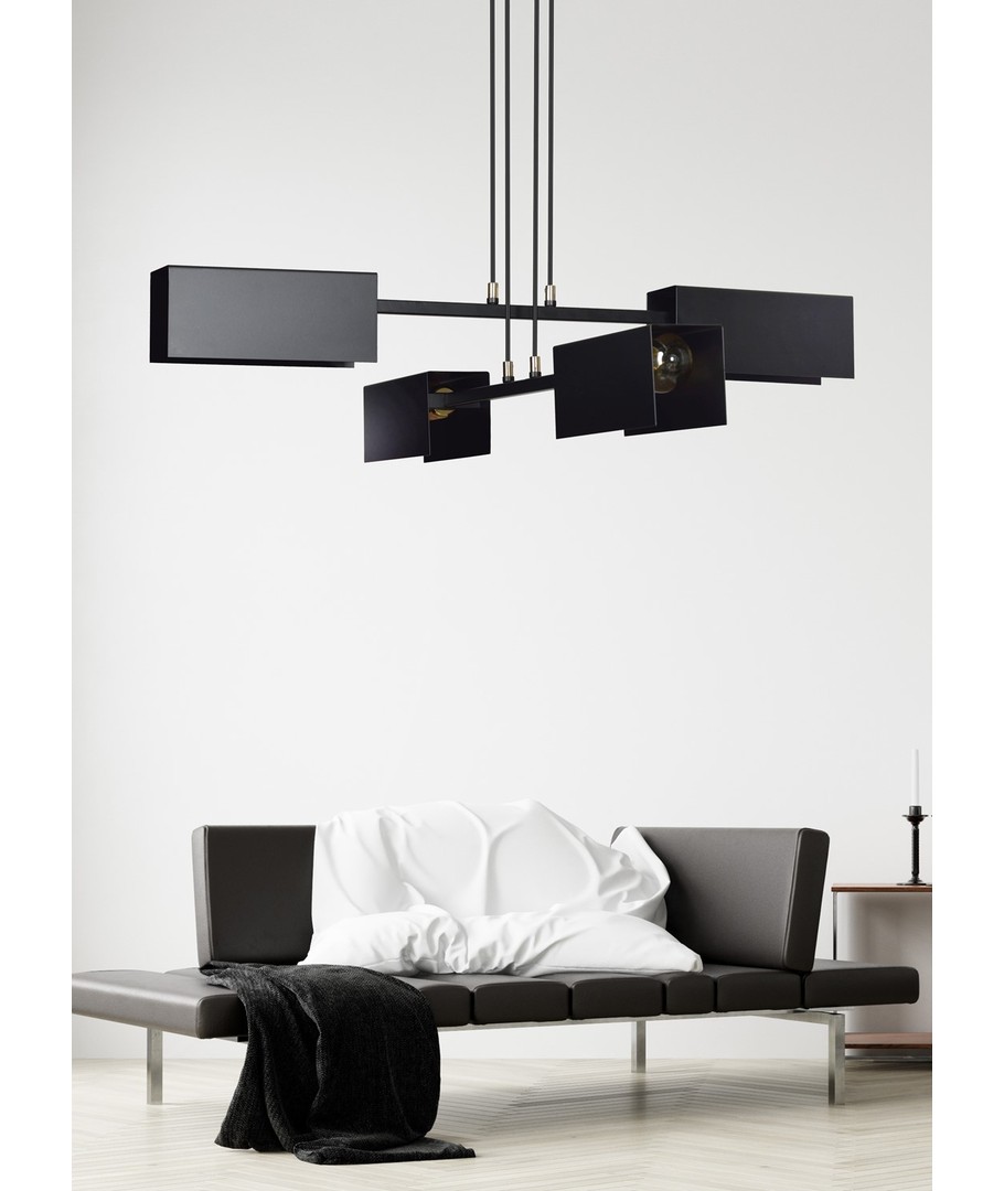 Tolos 4 Sort pendellampe er det ideelle valget for de som ønsker å kombinere eleganse med minimalistisk design. Lampearmaturet har en strømlinjeformet, geometrisk konstruksjon, som tilfører et stilfullt og moderne uttrykk til enhver boligdekor. De gylne elementene tilfører et snev av glamour, som står i vakker kontrast til den svarte fargen. Denne unike lampen passer perfekt inn i både tak- og industristil-inspirerte rom og fanger umiddelbart oppmerksomheten gjennom sitt elegante design.