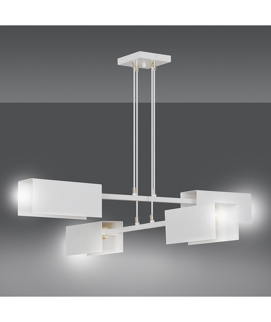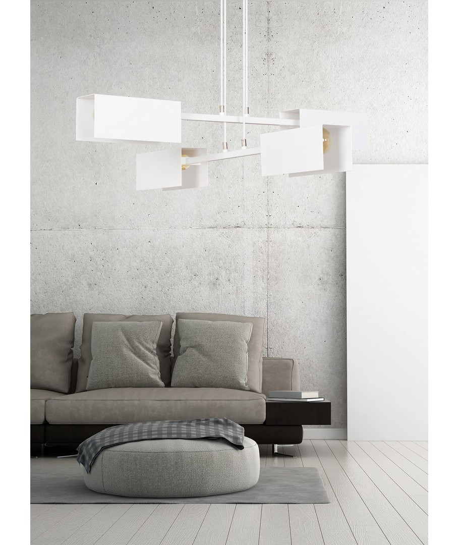 Tolos 4 Pendellampe er en fremragende tillegg til ethvert moderne hjem med sin minimalistiske og geometrisk elegante konstruksjon. Den har et yndig design som forbedrer dine rom og tilfører en unik karakter til innredningen. De integrerte gulldetaljene bringer en subtil glamour, som tilfører ekstra eleganse til tak- og industristilte miljøer. Den hvite finishen komplementerer ulike fargeskjemaer, noe som gjør den til et allsidig valg for forskjellige boligdekorasjoner.