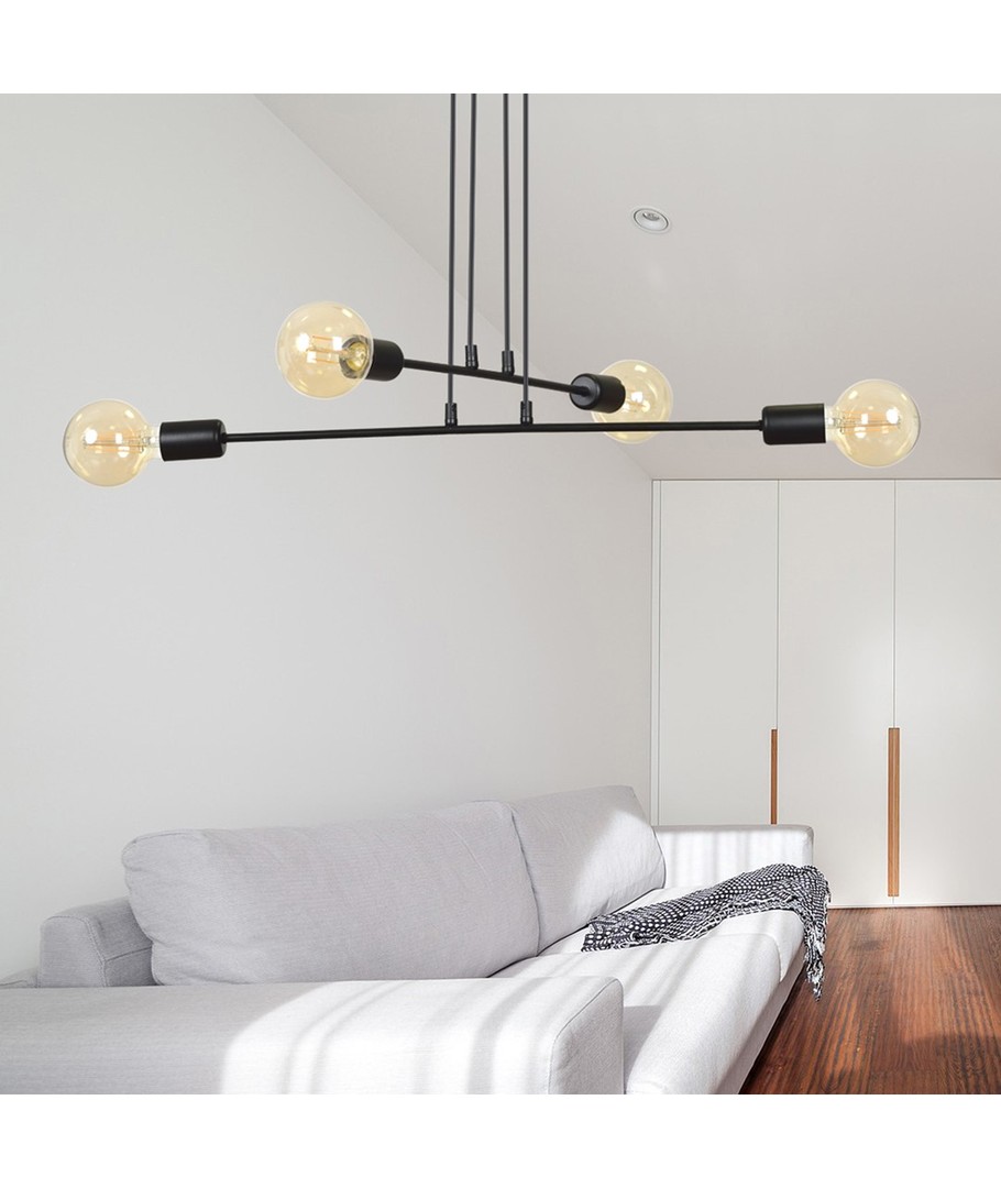 Multipo 4 Sort pendellampe er perfekt designet for høye takrom, hvor den kan utnytte sin unike minimalistiske og romslige form til fulle. Denne lampen er skapt for å tiltrekke seg oppmerksomhet med sitt iøynefallende design og fungerer som et stilfullt midtpunkt i enhver industrielt inspirert innredning. Med sin ekspansive struktur sikrer Multipo lampen en optimal belysning av rommet, samtidig som den frembringer en moderne atmosfære.