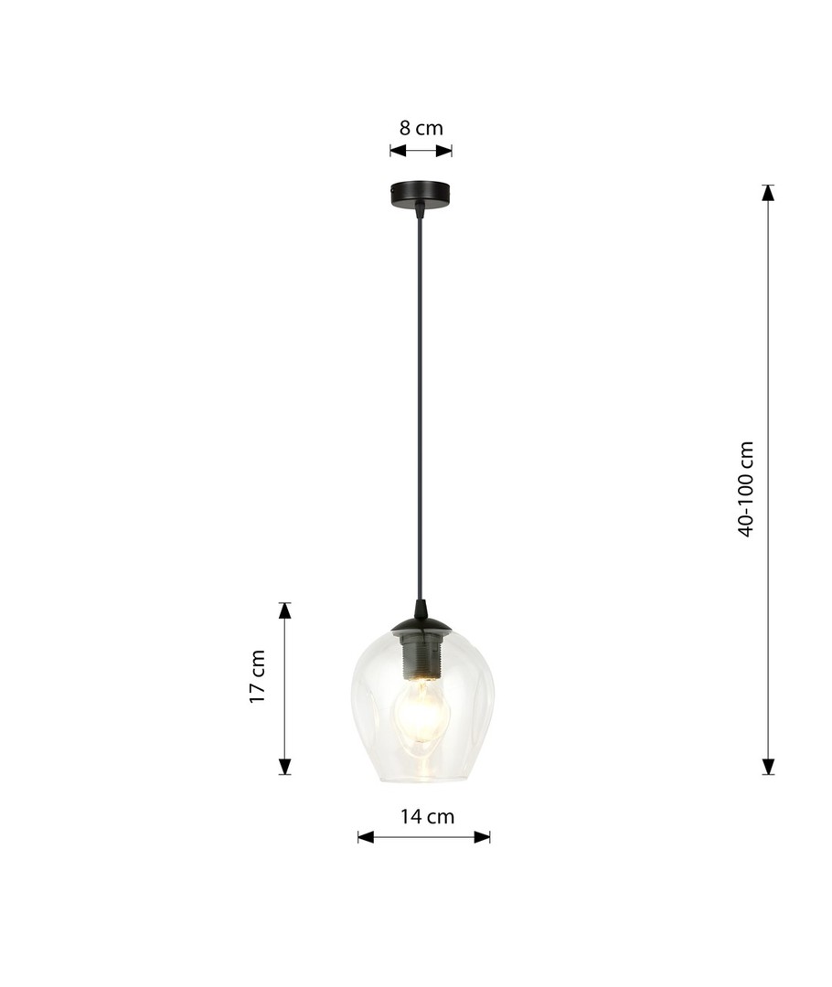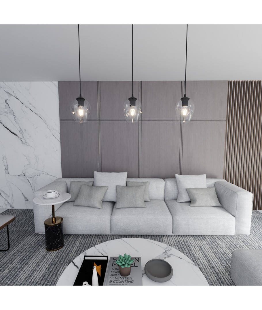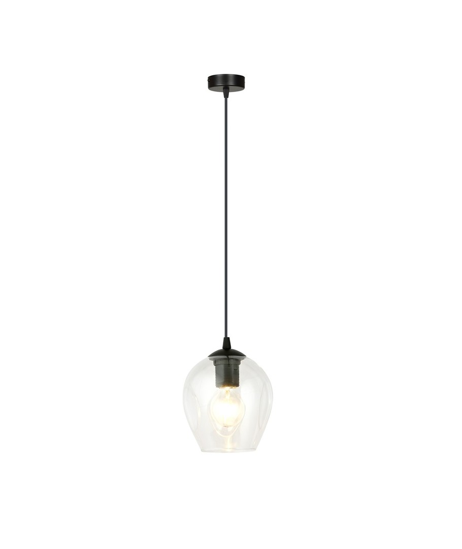 Denne stilrene pendellampen bringer moderne eleganse til ethvert rom. Med en kombinasjon av svart og transparent finish, er den ideell for både hjem og kontor.