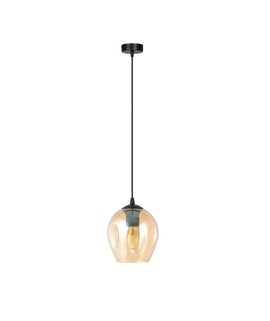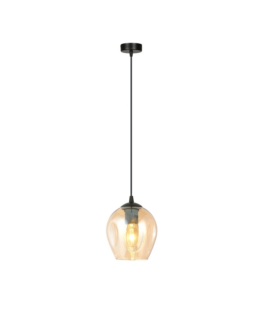 Legg til et snev av eleganse i ditt hjem med vår stilfulle pendellampe i sort og amber. Denne lampen er designet for å gi en varm og innbydende atmosfære i ethvert rom. Med sin slanke og moderne form gir den et tidløst uttrykk som passer perfekt inn i din innredning.