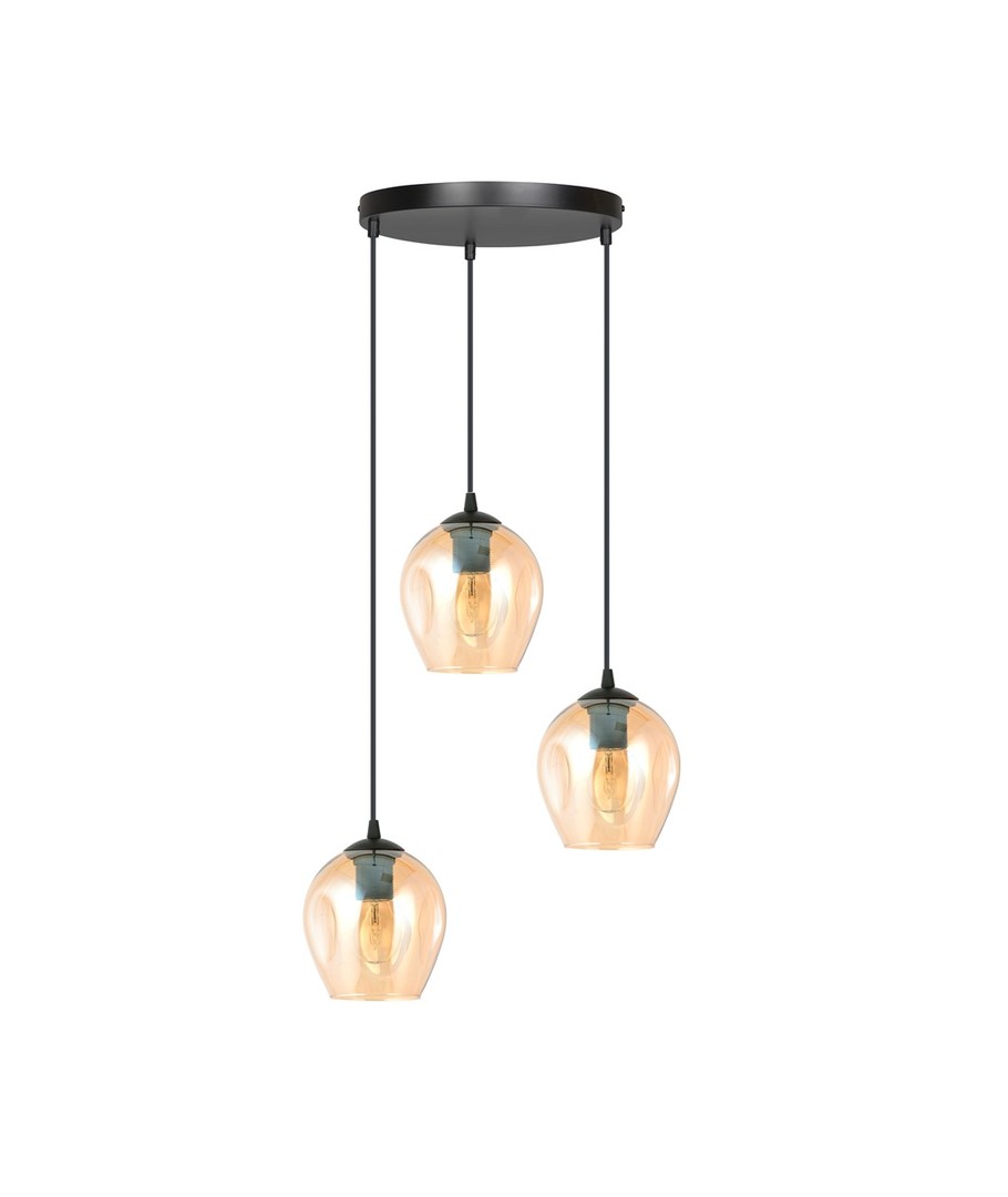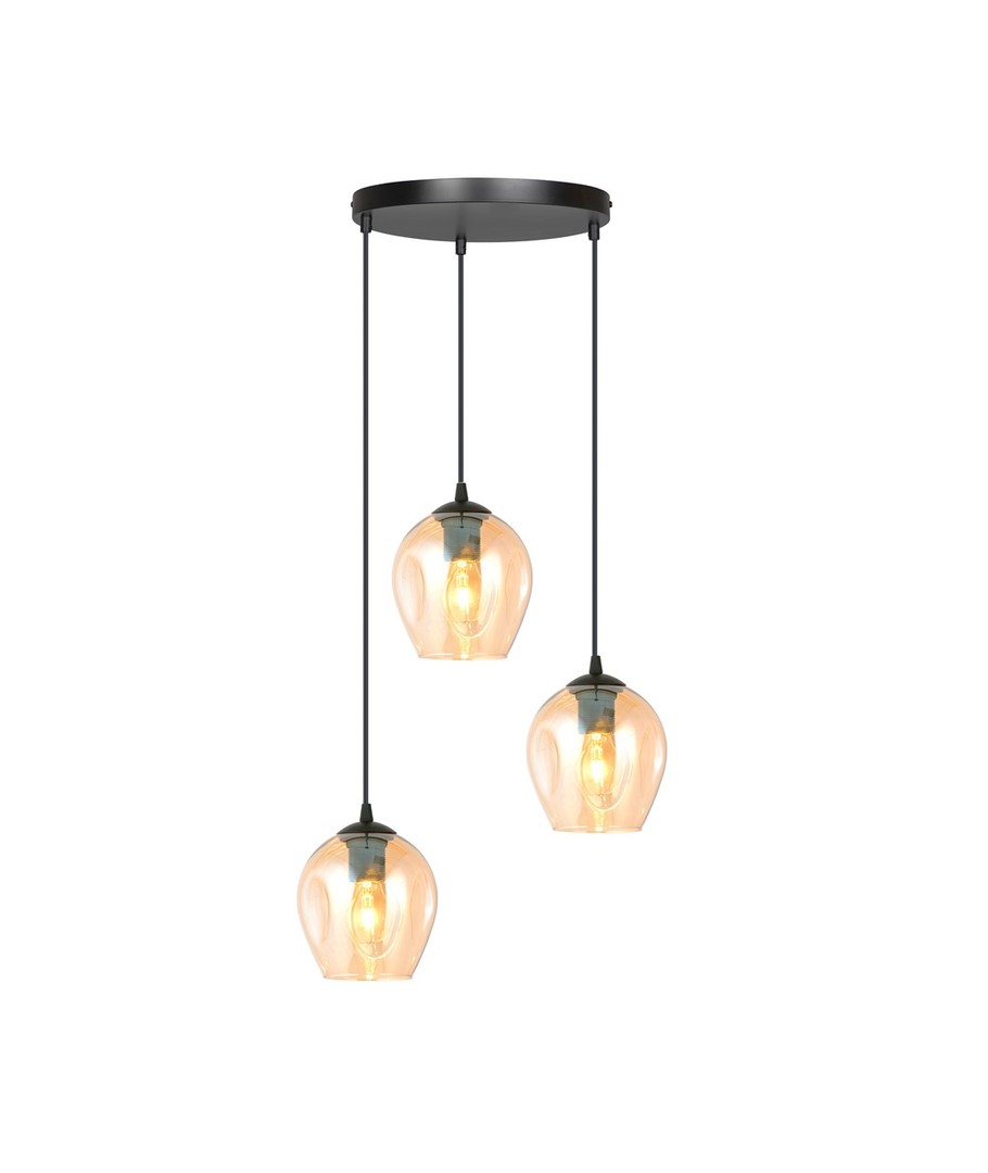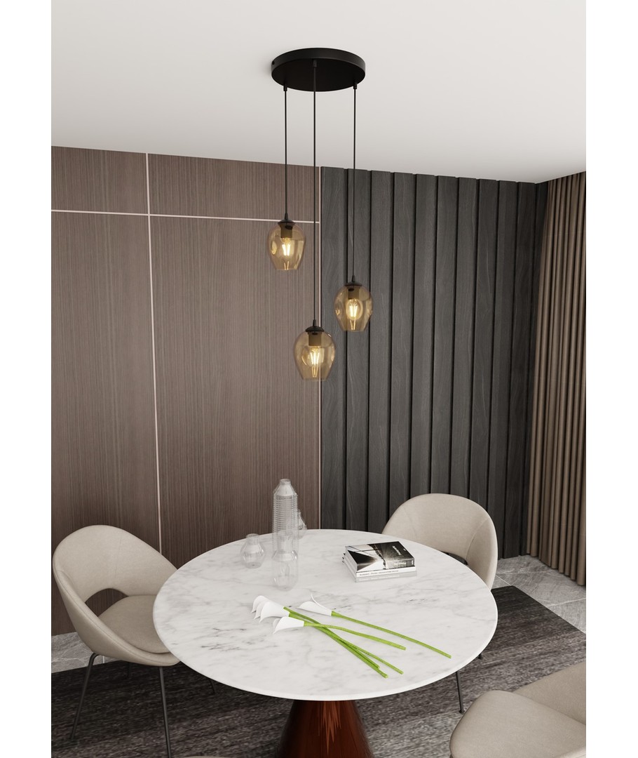 Den stilrene sorte finishen kombinert med ravfargen gir en varm og innbydende glød, noe som gjør den ideell for både stuer og spisesteder. Med sitt enkle, men sofistikerte design blir denne pendellampen et naturlig fokuspunkt i rommet.