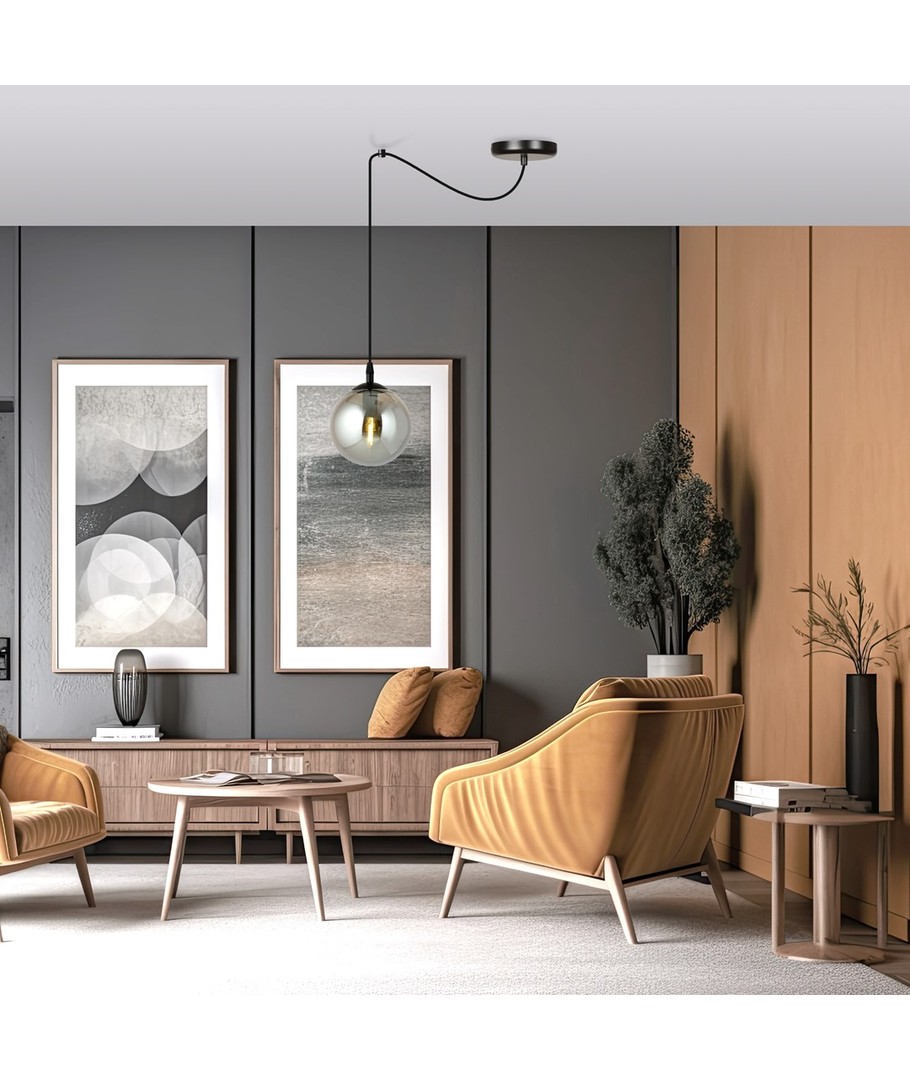 Gigi 1 Sort/Grafit pendellampe er en del av en tidløs og universell kolleksjon, som kan tilpasse seg enhver innredning. Med sitt minimalistiske design passer lampen perfekt inn i de nyeste trendene uten å gå på kompromiss med eleganse. De trendriktige glasskjermene sikrer en fremragende belysning og tilfører et stilfullt preg til rommet. Gigi-seriens unike design fascinerer med sin allsidighet og mulighet for å velge mellom forskjellige farger av skjermer.