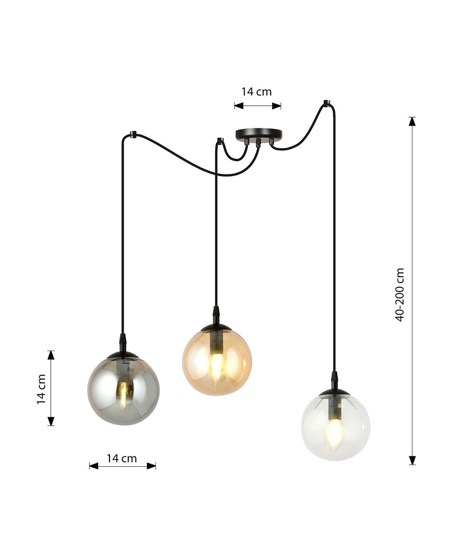 Merk at lyskilder ikke er inkludert, og lampen er utstyrt med tre E14 sokler, som gir deg frihet til å velge den ønskede pæretypen.