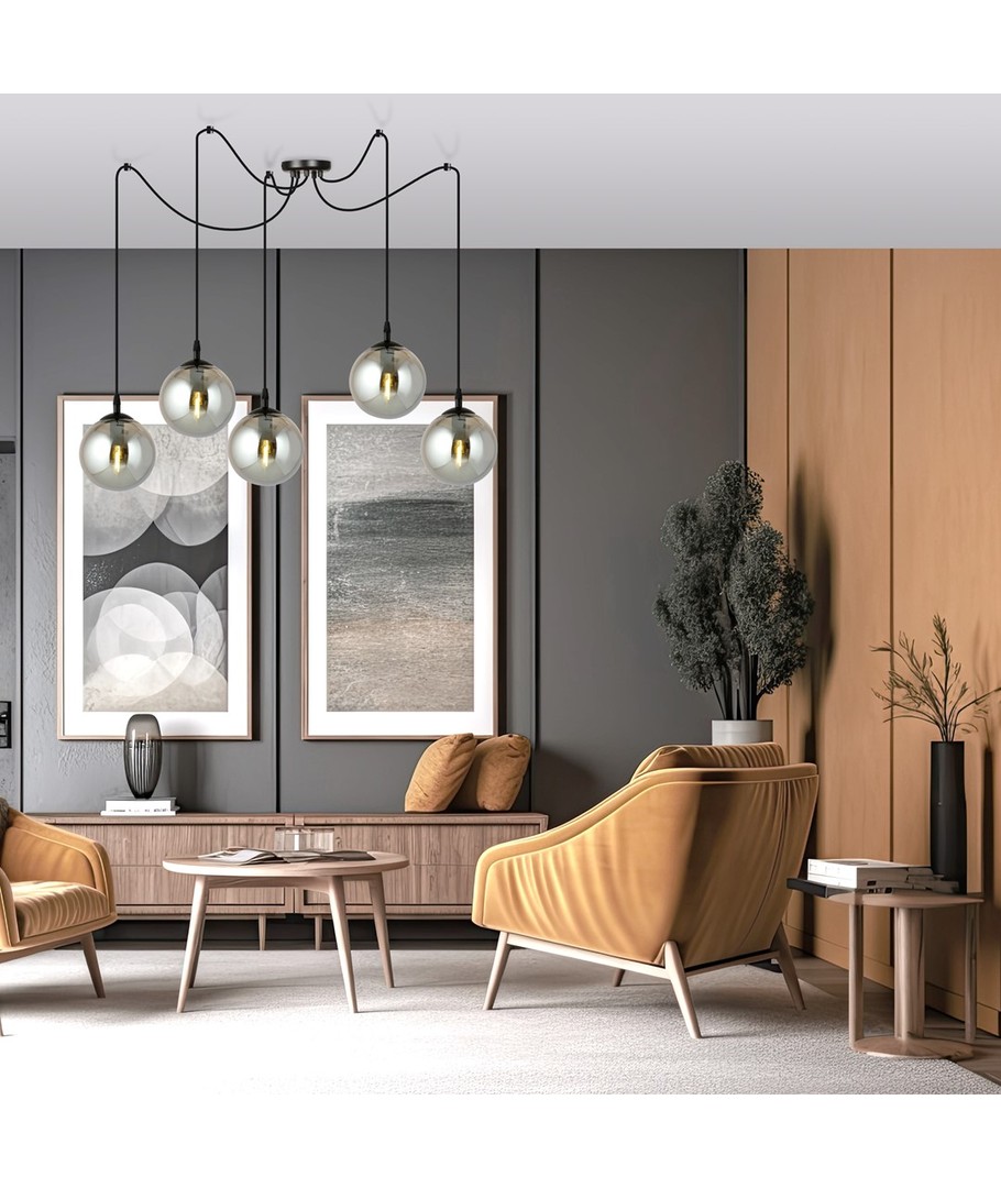 Opplev hvordan en stilfull belysningsløsning kan forvandle atmosfæren i ditt hjem med Gigi 5 Sort/Grafitt pendellampe.