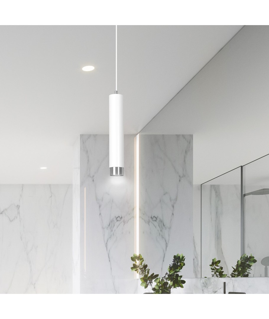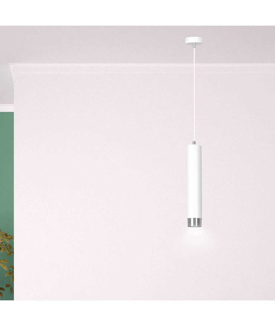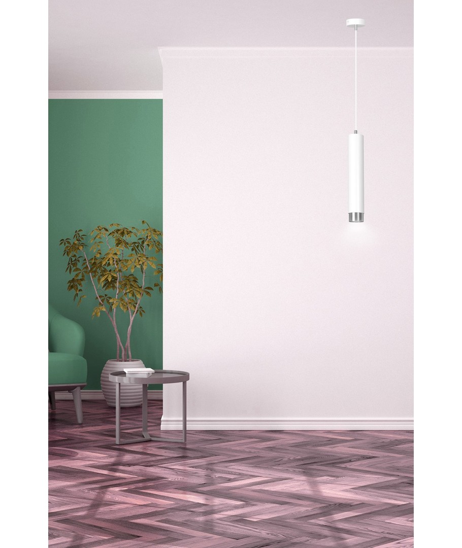 Kibo 1 Hvit/Krom pendellampe er en stilfull og moderne belysningsløsning som passer perfekt til enhver innredning. Med sin slanke, rørformede konstruksjon i pulverlakkert stål kombinerer den eleganse med funksjonalitet. Enten den plasseres i stuen, kjøkkenet eller hjemmekontoret, tilfører denne lampen et snev av moderne design. Den justerbare høyden gjør det enkelt å tilpasse lyset til dine behov, mens den hvite og sølvfargede finishen tilfører en luksuriøs og stilren estetikk til rommet.