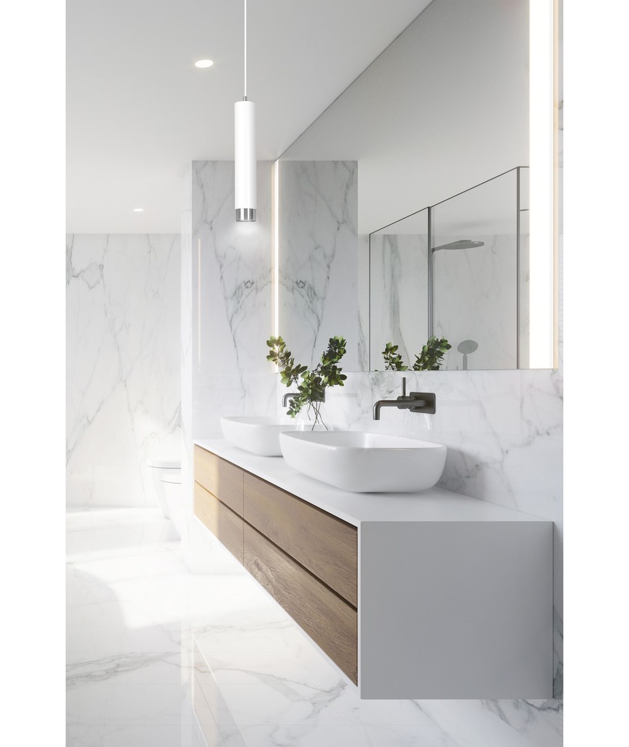 Med sitt enkle og elegante design, er denne pendellampen en stilfull tillegg til ethvert rom. Perfekt for å lyse opp spisebordet, stuen eller kjøkkenet, den passer utmerket inn i moderne interiør med sin hvit/krom finish.