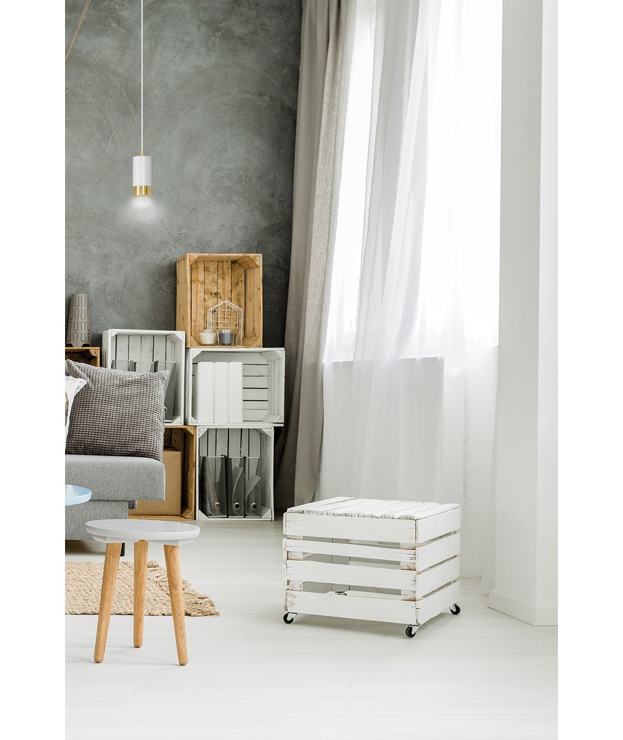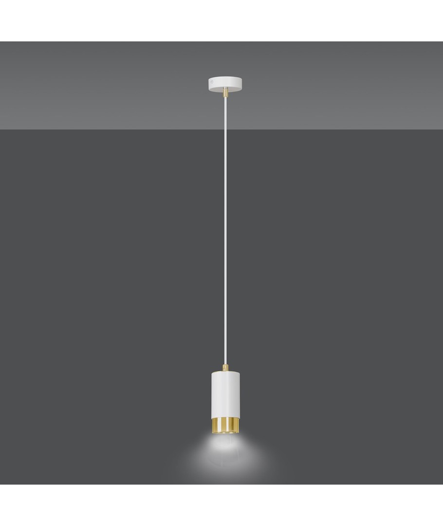 Berik ditt interiør med Fumiko 1 pendellampe, en perfekt kombinasjon av eleganse og funksjonalitet. Denne stilfulle lampen kommer i en moderne hvit og gull finish som gir et sofistikert uttrykk til enhver bolig.