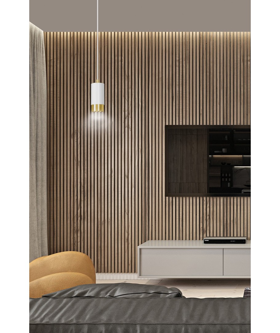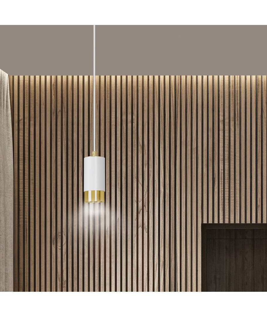 Fumiko 1 pendellampen i hvit og gull er et stilsikkert valg til moderne innredning. Med sitt trendy rørformede design tilfører denne lampen et elegant preg til hjemmet ditt, enten det er i stuen, kjøkkenet eller hjemmekontoret. Lampen er laget av slitesterkt, pulverlakkert stål, som sikrer både holdbarhet og et estetisk tiltalende utseende. De gyldne detaljene skaper en sofistikert kontrast til det hvite, noe som gjør lampen til en estetisk perle. Fumiko-serien er ideell for dem som ønsker å kombinere funksjonalitet med moderne design.