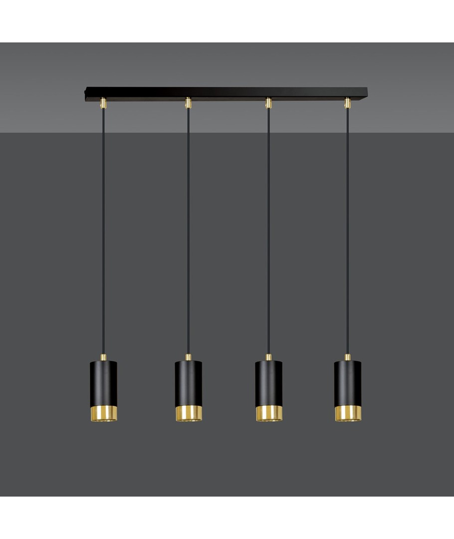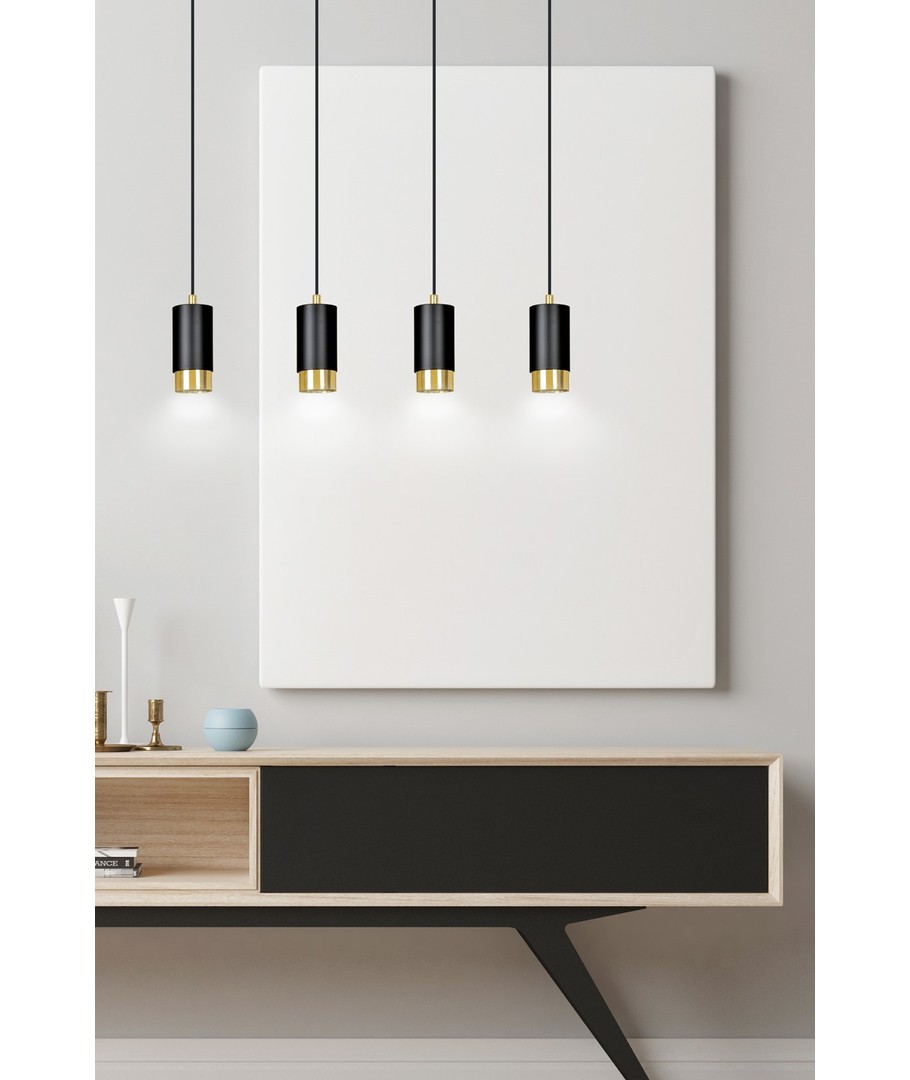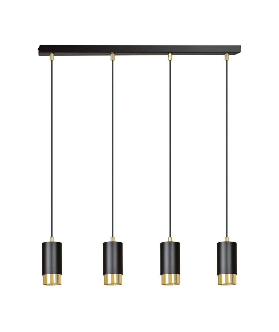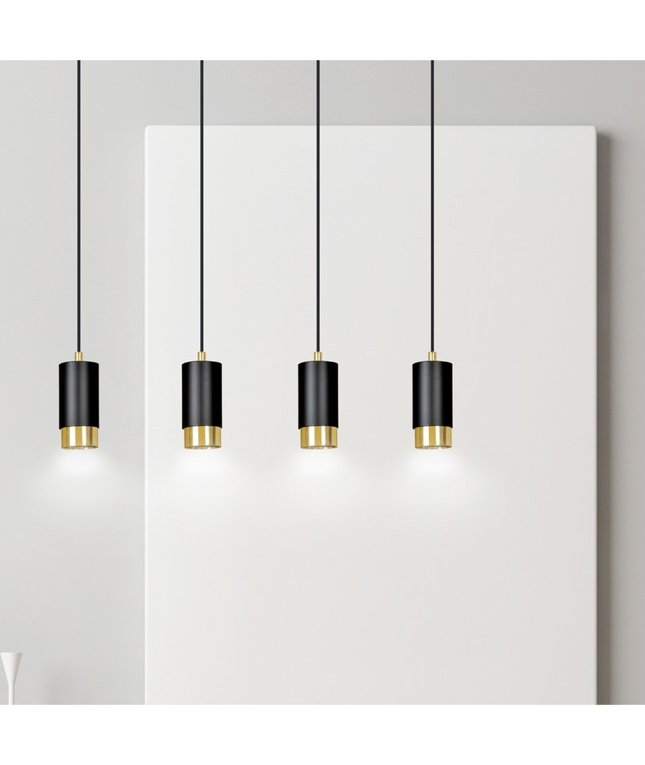 Fumiko 4 Sort/Gull pendellampe er en stilfull og moderne belysningsløsning designet for å komplementere ethvert interiør. Denne tubeformede lampe konstruert i holdbart pulverlakkert stål utstråler eleganse med sin sorte og gullfargede kontrast. Perfekt for både stue, kjøkken og hjemmekontor, gir Fumiko pendellampe et raffinert og moderne preg til dine rom. Lampens justerbare høyde gjør den fleksibel til forskjellige takhøyder, mens dens fire GU10 sokler sikrer rikelig belysning. Dette designstykket er ideelt for de som søker en balanse mellom funksjonalitet og estetikk.