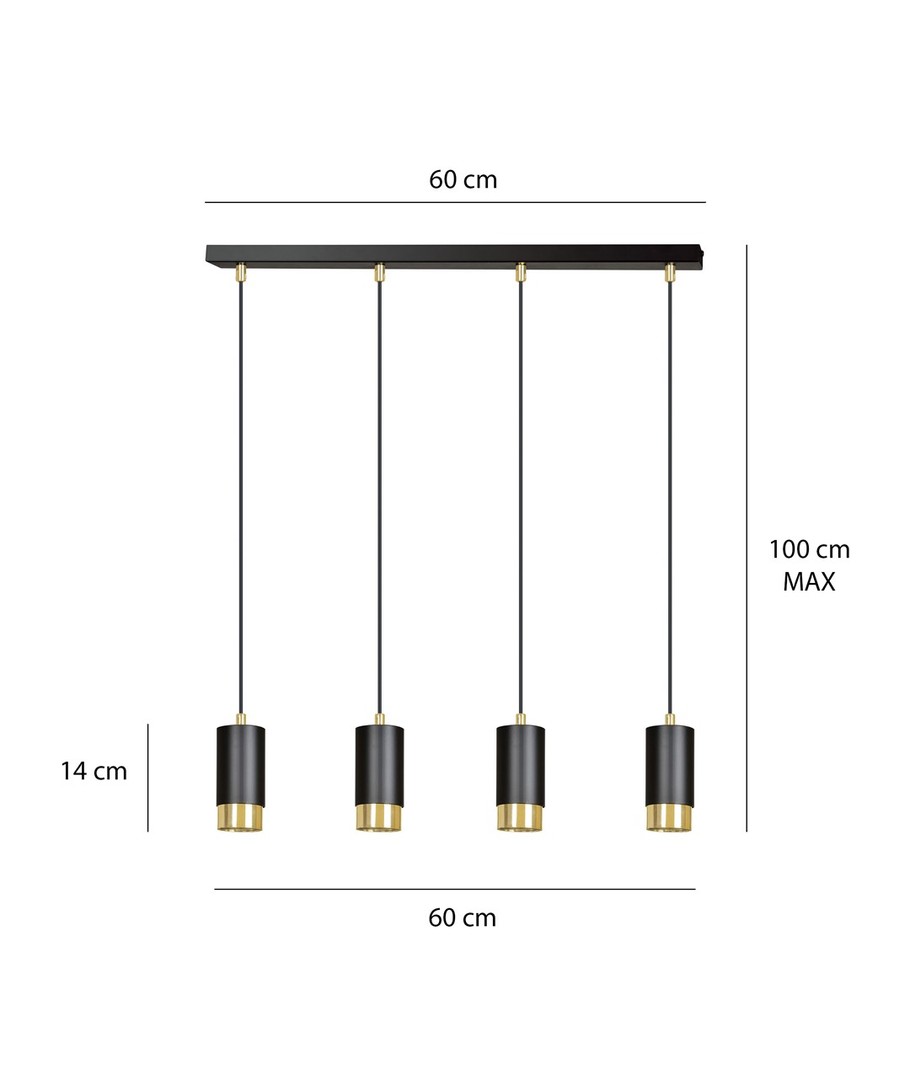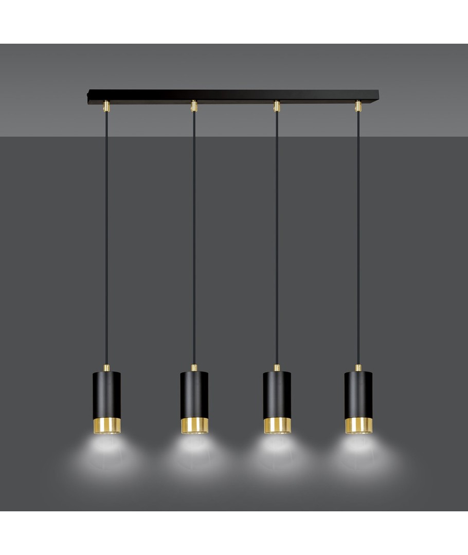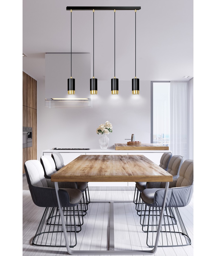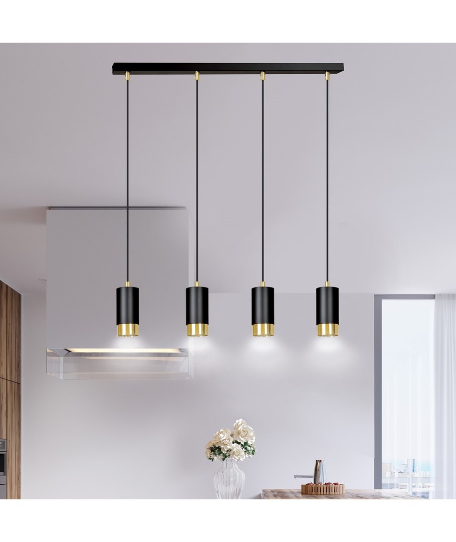 Fumiko 4 Sort/Gull pendellampe er en stilfull og moderne belysningsløsning designet for å komplementere ethvert interiør. Denne tubeformede lampe konstruert i holdbart pulverlakkert stål utstråler eleganse med sin sorte og gullfargede kontrast. Perfekt for både stue, kjøkken og hjemmekontor, gir Fumiko pendellampe et raffinert og moderne preg til dine rom. Lampens justerbare høyde gjør den fleksibel til forskjellige takhøyder, mens dens fire GU10 sokler sikrer rikelig belysning. Dette designstykket er ideelt for de som søker en balanse mellom funksjonalitet og estetikk.
